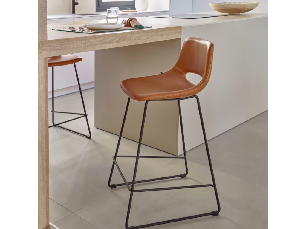 Podívám seKoňakově hnědá koženková barová židle Kave Home Zahara 76 cm