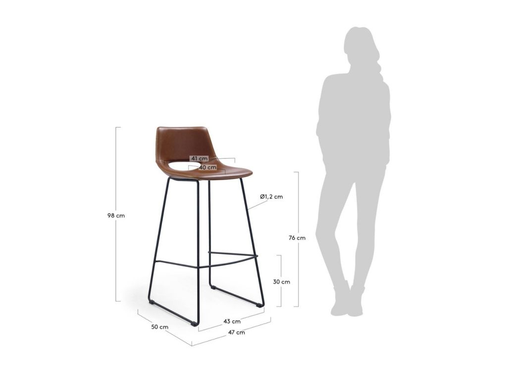 Koňakově hnědá koženková barová židle Kave Home Zahara 76 cm