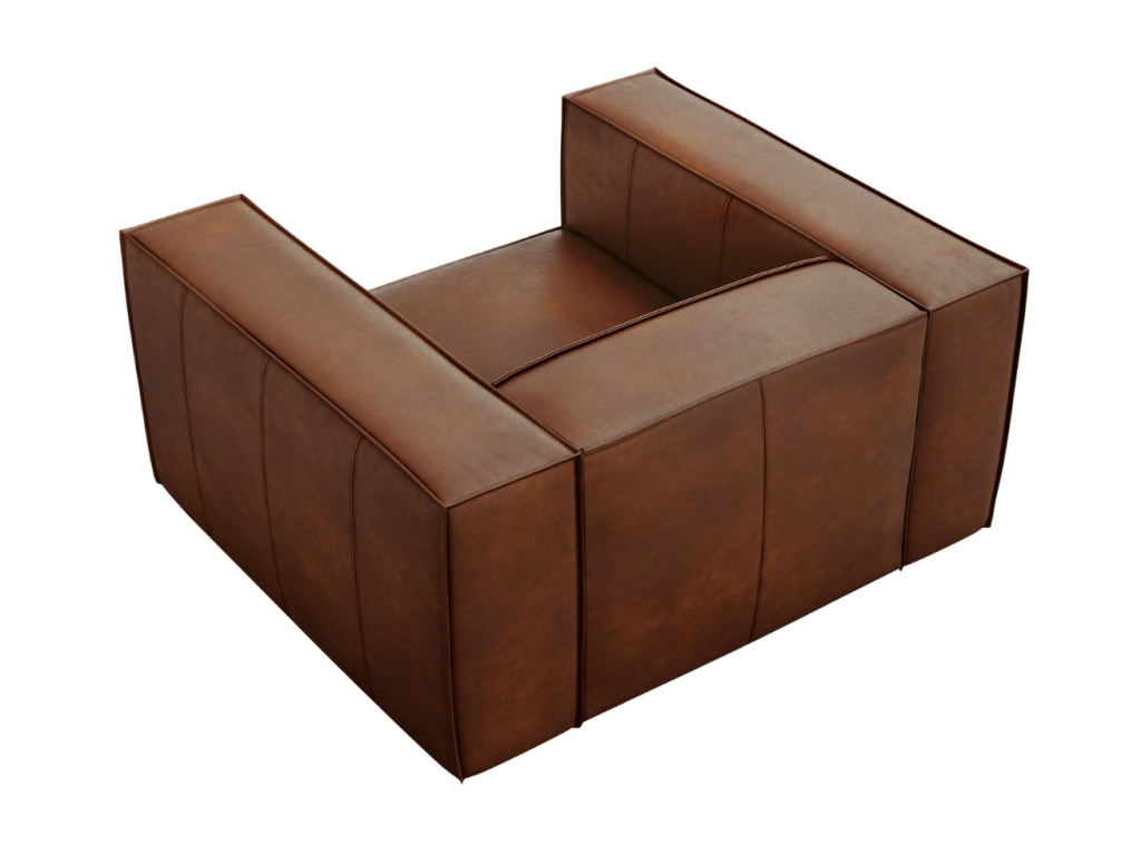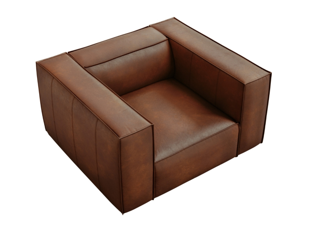 Křeslo Madame od značky Windsor & Co s čalouněním z pravé kůže si získá milovníky tohoto luxusního materiálu. Vrchní vrstva použité hovězí kůže je jemně embosovaná, díky čemuž je zachována její jemná struktura a na povrchu jsou viditelné její přírodní rysy. Tento designový kousek v odstínu koňakově hnědé s pohodlným opěradlem a praktickými područkami nabízí maximální komfort při sezení. Madame skvěle vynikne ve vintage i industriálně laděných interiérech. A pokud chcete dopřát ten pravý odpočinek i vašim unaveným nohám, můžete si pořídit také podnožku Madame a doladit tak každodenní relax k naprosté dokonalosti. Odpočívejte ve stylu!