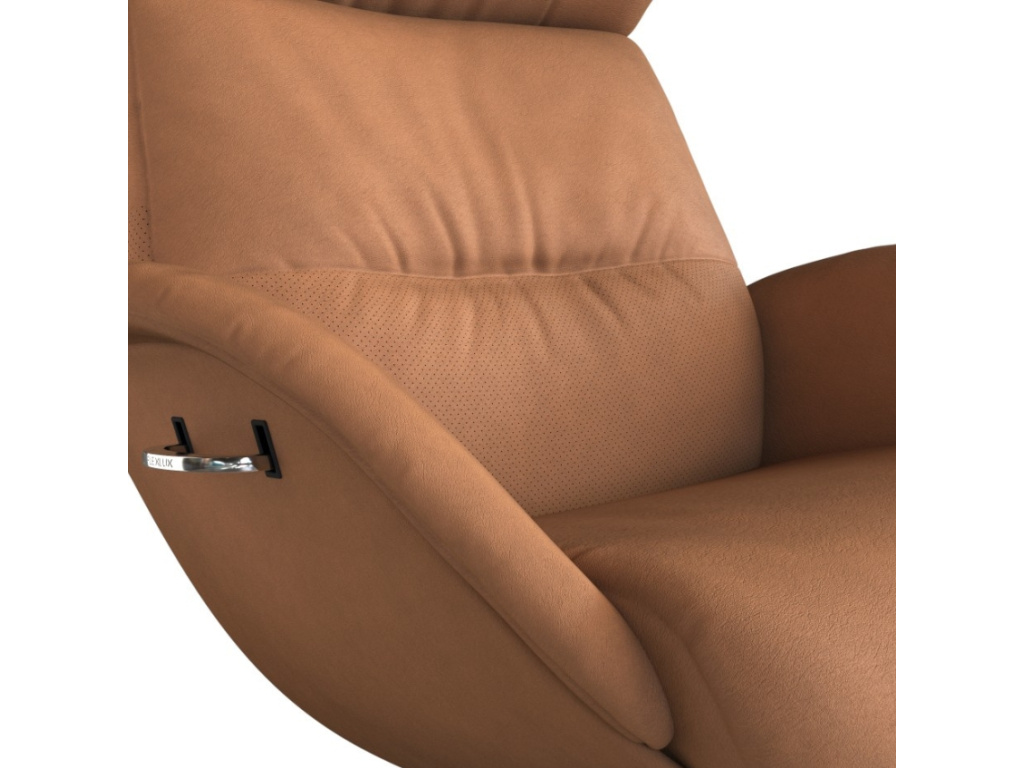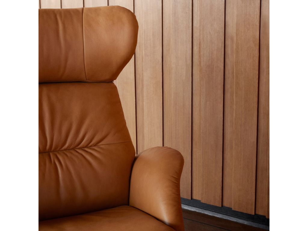 Dodejte své místnosti pocit luxusu s moderním koženým lounge křeslem More od značky Flexlux, které se stane nejenom stylovým doplňkem vaší domácnosti, ale také praktickým a pohodlným kouskem nábytku, ve kterém si můžete vychutnat své volné chvíle. Elegantní tvar křesla se skládá z jednoduchých linií a čistých křivek, které dodávají prostoru sofistikovaný vzhled. Je navrženo tak, aby zapadlo nejen do různých místností u vás doma, ale také do komerčních prostor. Díky otáčivému mechanismu je možné se pohodlně a snadno otočit ve všech směrech, což přidává na praktičnosti. Navíc má křeslo také nastavitelnou opěrku hlavy a polohovací funkci, která vám umožní si ho přizpůsobit dle svého gusta a vychutnat si tak maximální komfort. Je čalouněné anilinovou kůží Nature v jedinečném koňakově hnědém odstínu. Pokud jste milovníci přírodní a velmi jemné kůže, Nature je pro vás skvělou volbou. Použitá kůže má velkou tloušťku, je velmi pohodlná a příjemná na dotek.