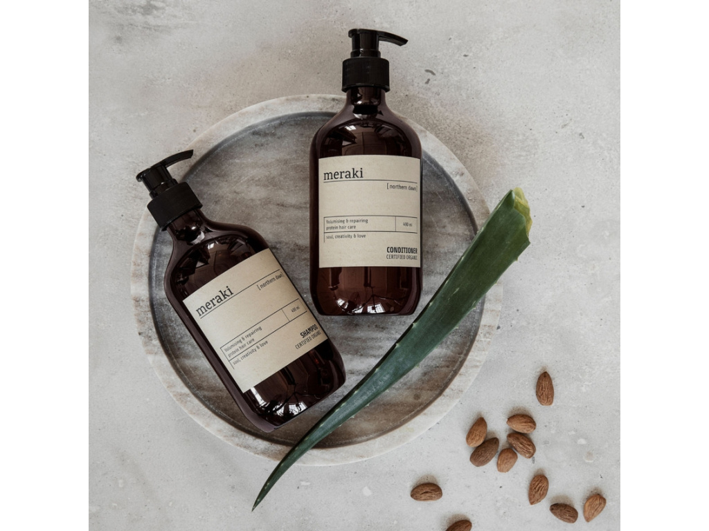 Certifikovaný organický kondicionér Northern Dawn od Meraki dodá vlasům objem a vyživí je. Rostlinný protein dodá objem a činí každý pramen vlasů plnější a hladší. Organické aloe vera a mandlový olej vyživí a zregenerují vlasy, aby se snadno rozčesávaly. Kondicionér vás okouzlí vůní pomeranče, cedrového dřeva a sladkého balsamica. Pumpička zaručí jednoduchou aplikaci a snadno nanesete jen tolik množství, kolik budete potřebovat.