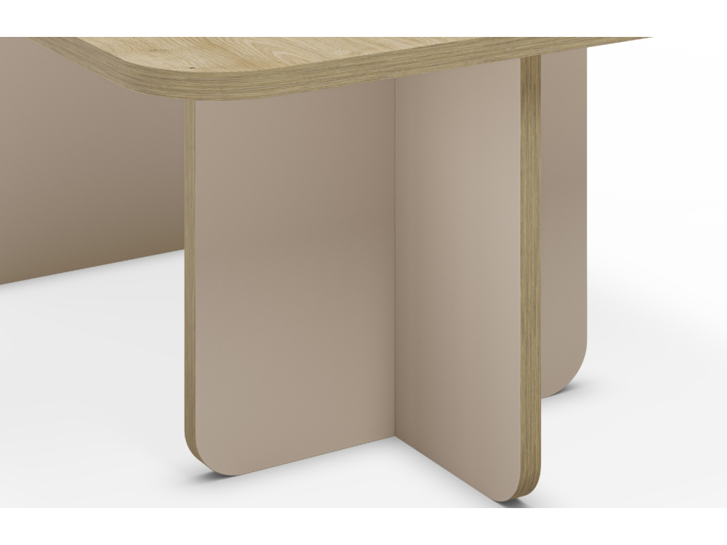 Tento konferenční stolek Hillary z kvalitního laminátu okouzlí svým elegantním minimalistickým designem. Zaoblené hrany podnože s krémovým nátěrem působí nejen esteticky měkce, ale zároveň zvyšují bezpečnost při každodenním používání. Skvěle zapadne do moderních i skandinávsky laděných interiérů, kde vynikne kombinace dubového dekoru a jemných linií. V kolekci Hillary najdete hranaté i kulaté varianty ve dvou barevných provedeních – krémové a zelené, přičemž buď je barevná deska a podnož s dubovým dekorem, nebo naopak. Jejich velkou výhodou je, že se dají snadno kombinovat!