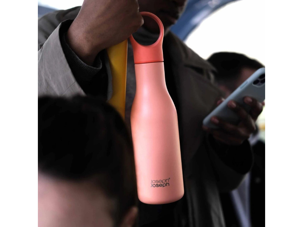 Se stylovou termolahví Loop od Joseph Joseph bude dodržování pitného režimu na jakémkoliv výletě hračka. Vakuově izolovaná láhev je vyrobena z nerezové oceli s měděnou vrstvou a pyšní se dvouplášťovou konstrukcí, která udrží horké nápoje 12 hodin a studené až 24 hodin. Uzávěr láhve je zakončen kulatým úchytem pro pohodlné přenášení a po otevření lze úchyt elegantně nasadit na hrdlo láhve, což umožní snadnější skladování. Chcete-li zachovat co nejdéle požadovanou teplotu nápoje, doporučujeme před naplněním předehřát horkou vodou nebo ochladit studenou vodou.