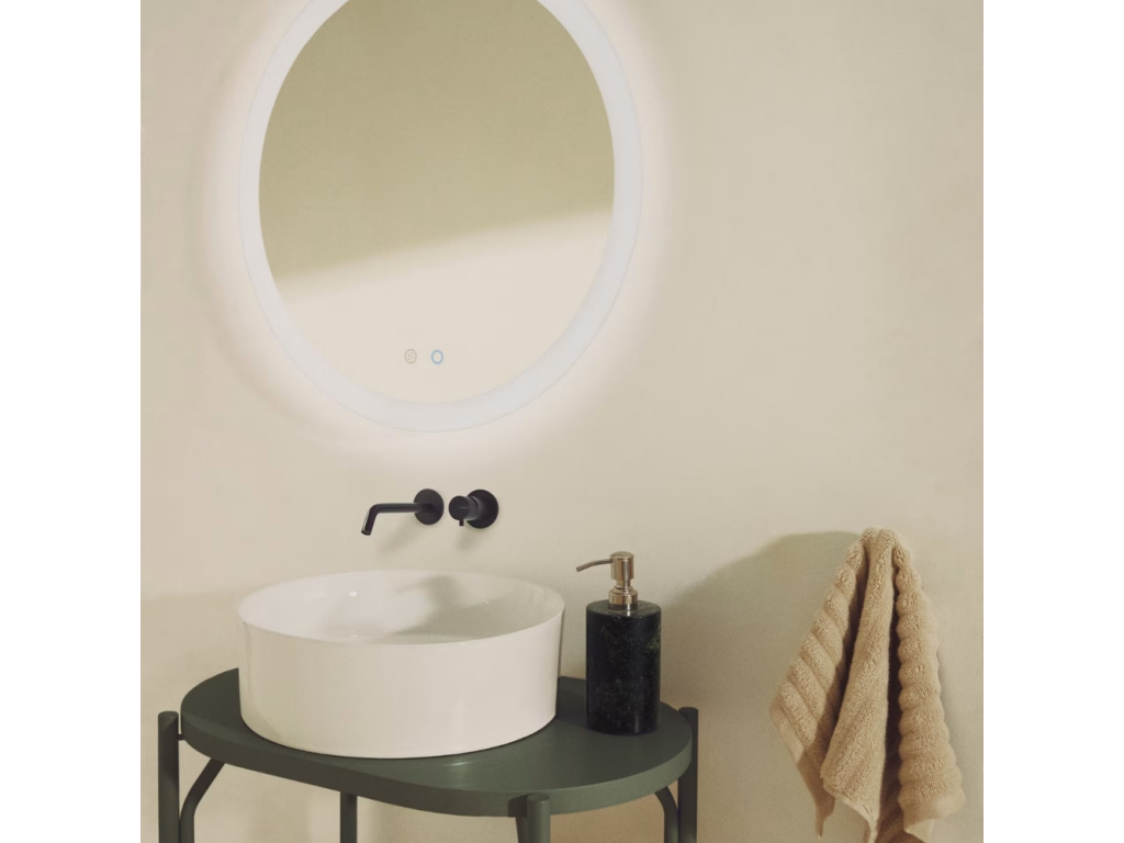 Koupelnové zrcadlo Mervi spojuje moderní design s praktickými funkcemi, které zpříjemní vaši každodenní rutinu. Pískovaný skleněný okraj vytváří elegantní průsvitný efekt a rozptyluje integrované LED světlo tak, aby poskytovalo rovnoměrné a příjemné osvětlení. Velkou výhodou je také možnost zvolit si teplý nebo studený tón světla – podle nálady či denní doby. Zrcadlo je navíc vybaveno anti-fog systémem proti zamlžování, který zajišťuje dokonalou viditelnost i po horké sprše. Aktivace LED osvětlení i odmlžovací funkce probíhá samostatnými dotykovými senzory, ovládání je tedy snadné a intuitivní. Díky krytí IP44 je zrcadlo chráněno proti vlhkosti – jako stvořené právě pro koupelnové prostředí. Minimalistický kulatý tvar, kvalitní sklo a chytré technologie promění vaši koupelnu v prostor, kde se snoubí funkčnost a styl. Vybírat navíc můžete ze tří dostupných velikostí.
