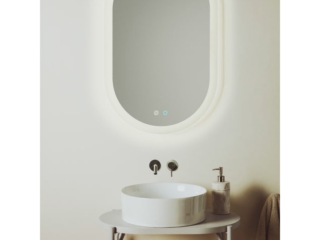 Koupelnové zrcadlo Mervi spojuje moderní design s praktickými funkcemi, které zpříjemní vaši každodenní rutinu. Pískovaný skleněný okraj vytváří elegantní průsvitný efekt a rozptyluje integrované LED světlo tak, aby poskytovalo rovnoměrné a příjemné osvětlení. Velkou výhodou je také možnost zvolit si teplý nebo studený tón světla – podle nálady či denní doby. Zrcadlo je navíc vybaveno anti-fog systémem proti zamlžování, který zajišťuje dokonalou viditelnost i po horké sprše. Aktivace LED osvětlení i odmlžovací funkce probíhá samostatnými dotykovými senzory, ovládání je tedy snadné a intuitivní. Díky krytí IP44 je zrcadlo chráněno proti vlhkosti – jako stvořené právě pro koupelnové prostředí. Minimalistický oválný tvar, kvalitní sklo a chytré technologie promění vaši koupelnu v prostor, kde se snoubí funkčnost a styl. Vybírat navíc můžete ze tří dostupných velikostí.