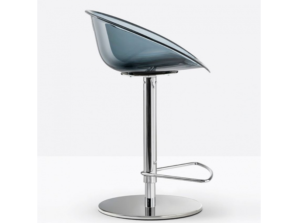 Tato otočná barová židle s libovolným nastavením výšky je skvělým doplňkem do všech interiérů díky svému modernímu a univerzálnímu designu z transparentního plastu. Stabilitu zajišťuje ocelová, nebo chromová podnož s praktickým opěrátkem pro nohy.