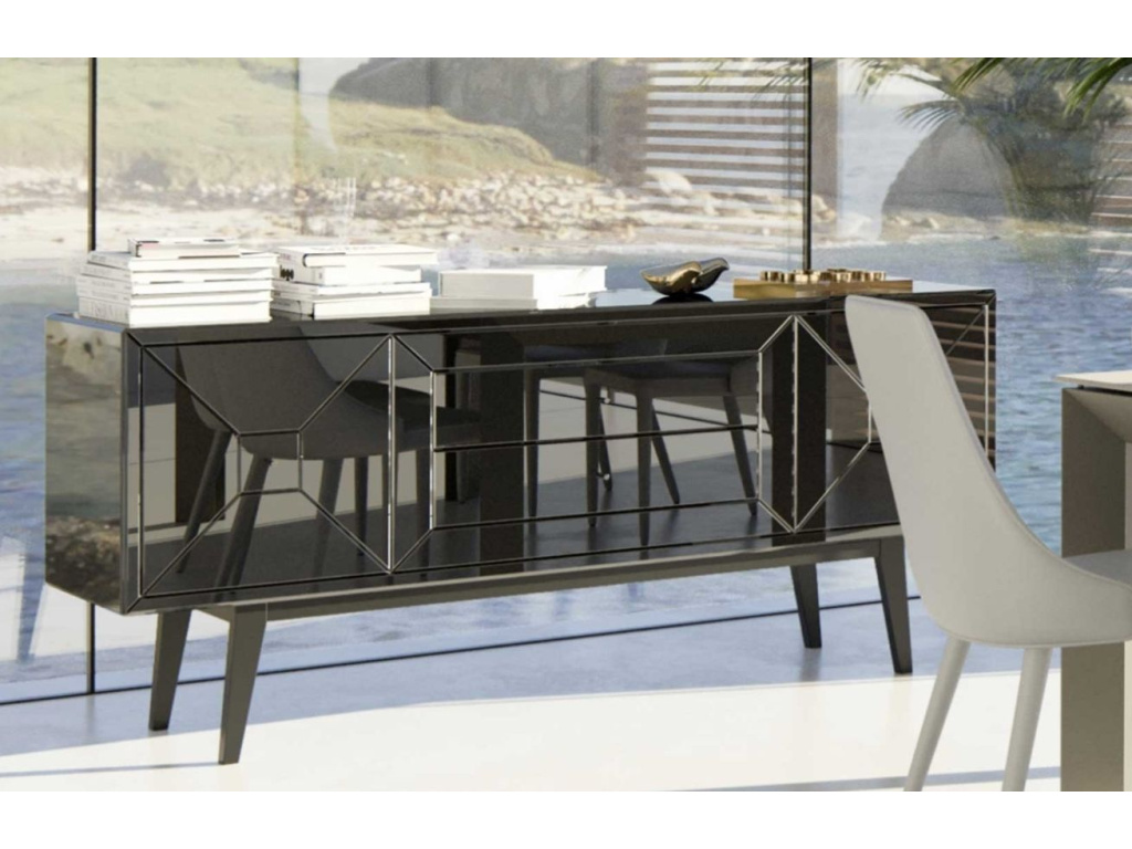 Elegantní kouřově šedá komoda Miotto Alba je nádherným kouskem nábytku, který se stane díky zrcadlovému zpracování dominantním prvkem každého interiéru. Obložení ze zrcadlových skel opticky zvětší vaši místnost a dodá komodě honosný vzhled. Komoda je postavena na dřevěné podnoži a atraktivní vzhled doplňují úchytky z nerezové oceli, které zvýrazní její eleganci a styl. Úložný prostor zajišťují 2 zásuvky a 2 oddělené skříňky.