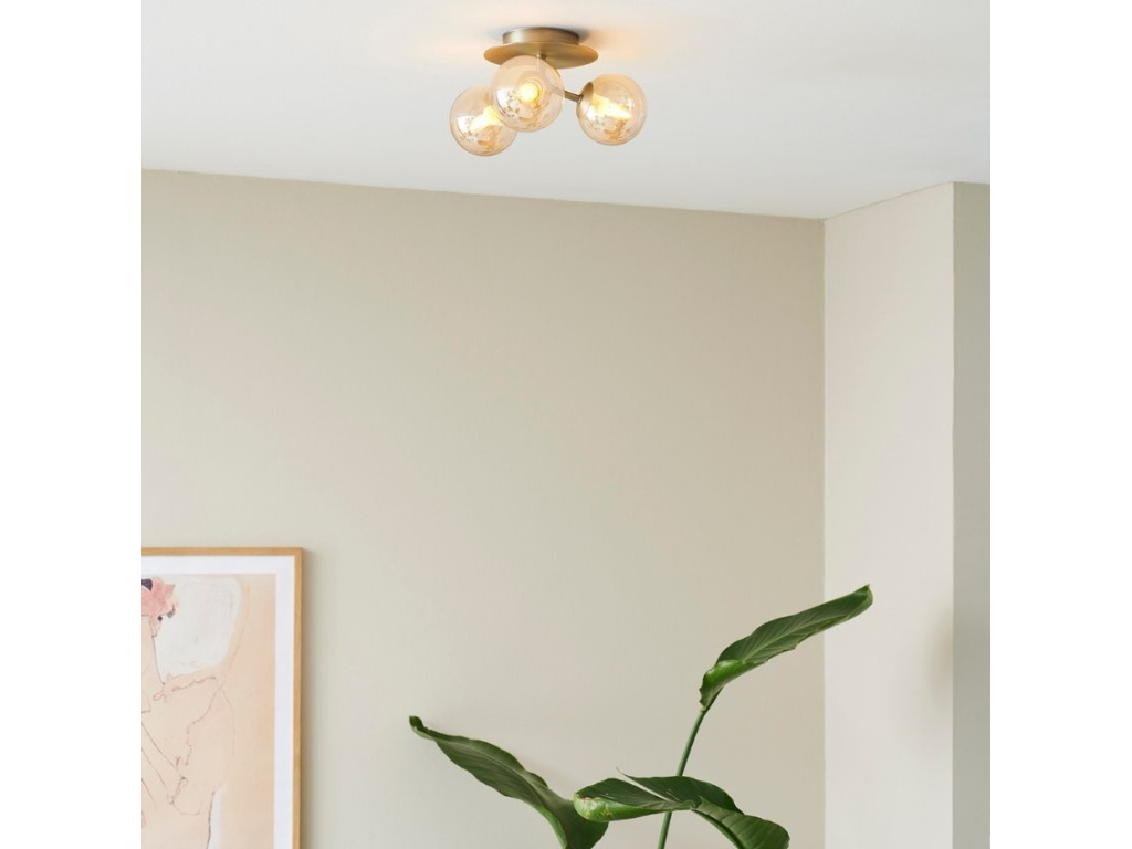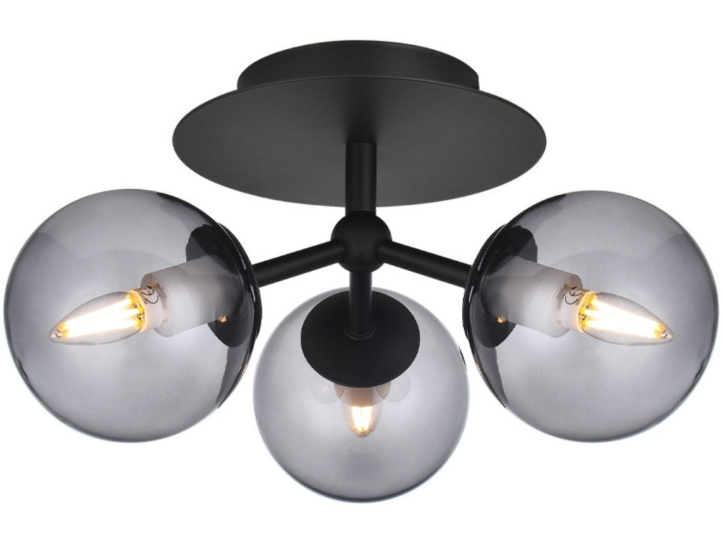 Elegantní stropní světlo Atom od značky Halo Design zaujme již na první pohled svým jedinečným designem. Tři transparentní kouřově šedá skleněná stínidla jsou umístěna na kovovém zavěšení mosazné barvy. Světlo Atom je k dispozici v několika barevných variantách, díky čemuž se snadno přizpůsobí každému interiéru. Stropní světlo Atom skvěle vynikne v moderních interiérech komerčních i nekomerčních prostor.