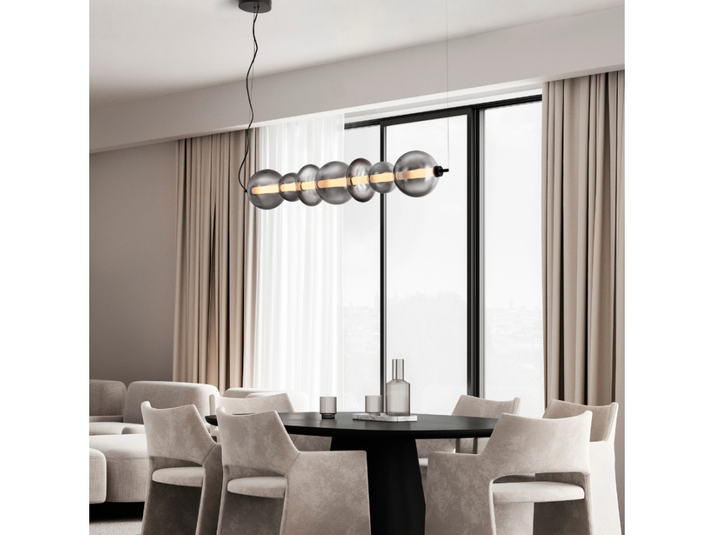 Série závěsných světel Bally od Nova Luce zaujme svým elegantním designem s kouřově šedými skleněnými stínidly ve tvaru baněk, které přitahují pozornost svou jednoduchostí a elegancí. Uvnitř stínidla se nachází LED trubice, která zajišťuje rovnoměrné a efektivní osvětlení. Světla disponují černým kovovým zavěšením, což dodává celkovému vzhledu moderní a industriální nádech. S teplotou barvy světla 3000 K vytvářejí příjemné, teplé osvětlení, které je stmívatelné pro přizpůsobení intenzity dle potřeby. Tato série je ideální pro jídelny, obývací pokoje nebo nad kuchyňské ostrůvky, kde vynikne jak jejich estetika, tak funkčnost.