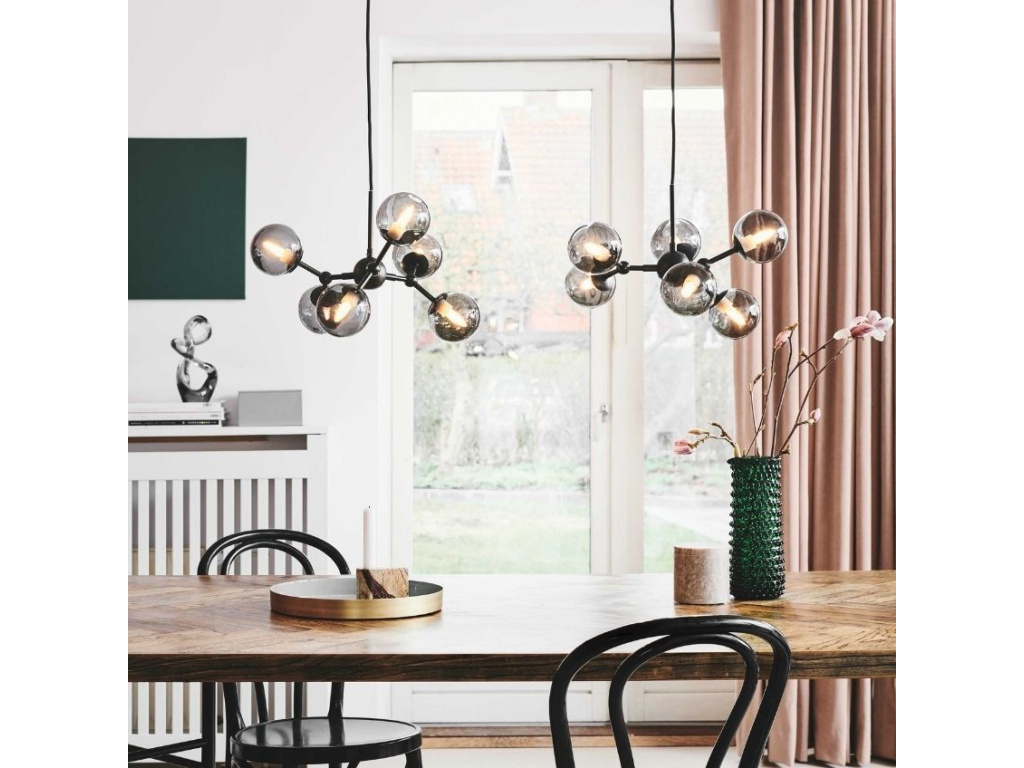 Elegantní závěsné světlo Atom od značky Halo Design zaujme již na první pohled svým jedinečným designem. Transparentní kouřově šedá skleněná stínidla jsou umístěna na kovových ramenech, která jsou pohyblivá a lze tak světlo upravit přesně podle vašich představ, díky čemuž získá osvětlení na výjimečnosti a originalitě. Lustr Atom je k dispozici v několika barevných variantách, díky čemuž se snadno přizpůsobí každému interiéru. Závěsné světlo Atom skvěle vynikne v moderních interiérech komerčních i nekomerčních prostor.