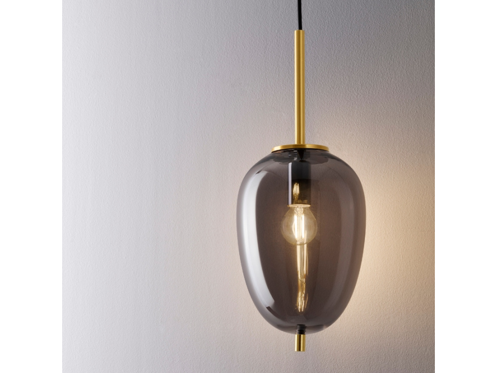 Skleněné závěsné světlo Lato od značky Nova Luce dodá vašemu prostoru útulnou atmosféru a zároveň se stane chloubou a originálním doplňkem vaší místnosti. Zaujme vás svým stínidlem z elegantního kouřového skla, které je zkombinováno se zlatými kovovými detaily a vytváří tak jedinečný kontrast. Nejvíce se bude vyjímat v interiérech, které jsou laděny do moderního nebo severského stylu.