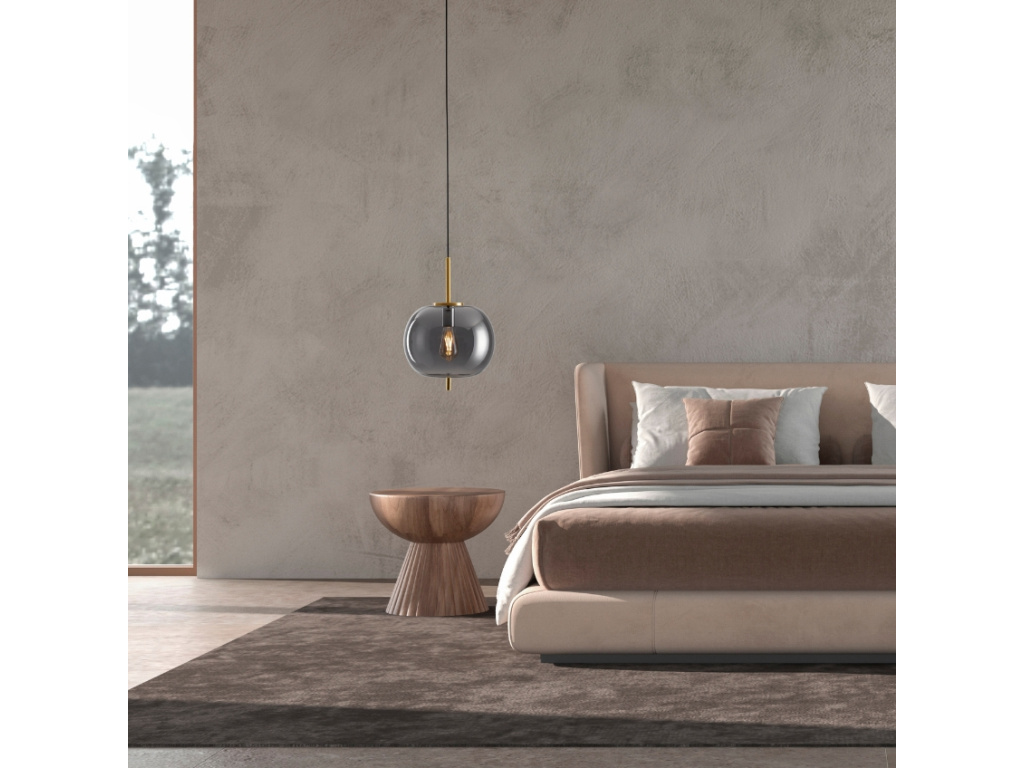 Skleněné závěsné světlo Lato od značky Nova Luce dodá vašemu prostoru útulnou atmosféru a zároveň se stane chloubou a originálním doplňkem vaší místnosti. Zaujme vás svým stínidlem z elegantního kouřového skla, které je zkombinováno se zlatými kovovými detaily a vytváří tak jedinečný kontrast. Nejvíce se bude vyjímat v interiérech, které jsou laděny do moderního nebo severského stylu.