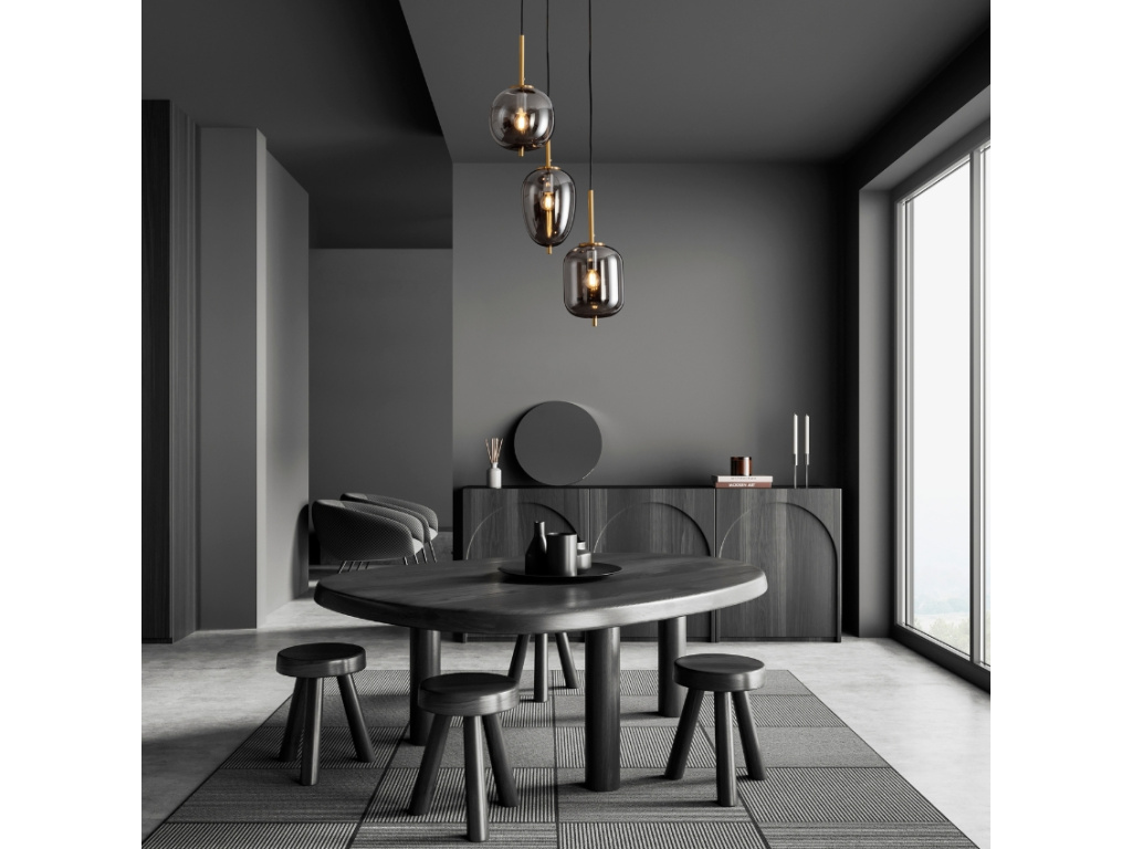 Skleněné závěsné světlo Lato od značky Nova Luce dodá vašemu prostoru útulnou atmosféru a zároveň se stane chloubou a originálním doplňkem vaší místnosti. Zaujme vás svými stínidly z elegantního kouřového skla, které je zkombinováno se zlatými kovovými detaily a vytváří tak jedinečný kontrast. Nejvíce se bude vyjímat v interiérech, které jsou laděny do moderního nebo severského stylu.