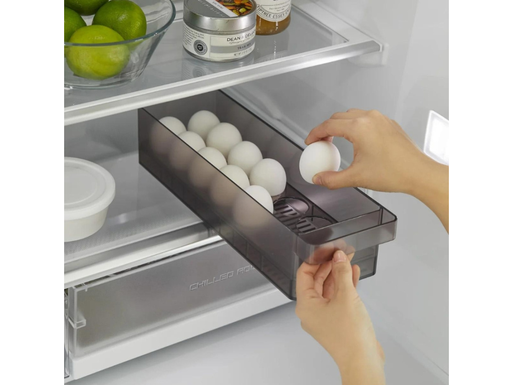 Zásobník vajec Tower od značky Yamazaki představuje elegantní a praktické řešení pro uchovávání vajec v lednici. Zásobník pojme až 14 vajec a jednou z klíčových vlastností tohoto zásobníku je jeho stohovatelnost. Vajíčka jsou vždy dobře chráněna a snadno dostupná. Zásobník je také snadno omyvatelný, což usnadňuje jeho údržbu. Vybírat u nás můžete ze dvou variant – zásobník je dostupný v bílé i černé barvě.
