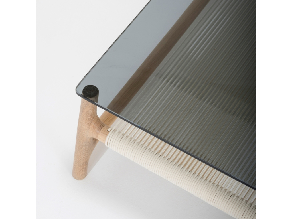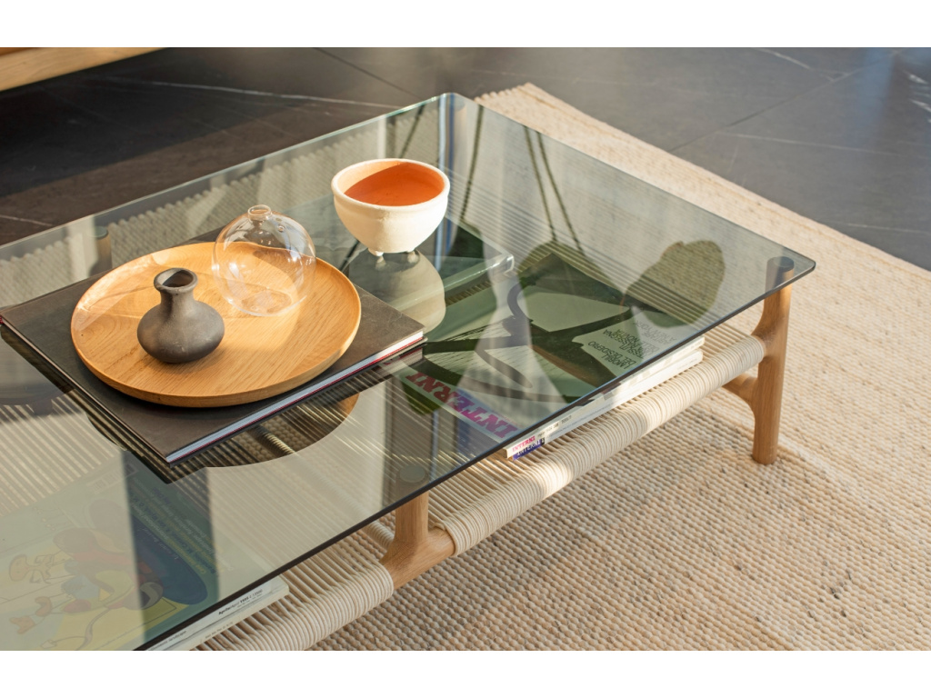 Konferenční stolek Fawn disponuje odkládací policí v podobě elegantního výpletu. Ten je tvořený pevným bavlněným lanem, které se skvěle doplňuje s konstrukcí z masivního naolejovaného dubového dřeva. Třešničkou na dortu je pak obdélníková deska z tvrzeného skla. Spojením těchto materiálů vzniká půvabný a sofistikovaný designový kousek, který se stane výraznou chloubou vašeho obývacího pokoje. K dostání je také ve čtvercovém provedení a v menší odkládací verzi – co takhle jim v interiéru najít místo všem?