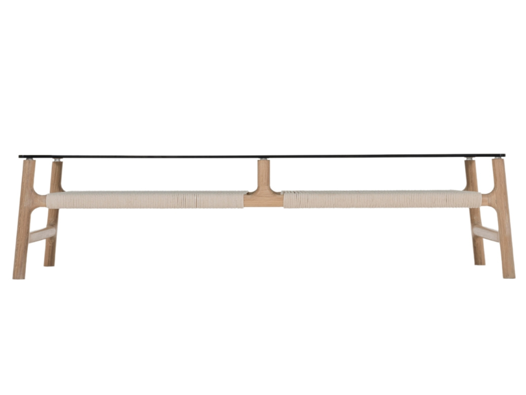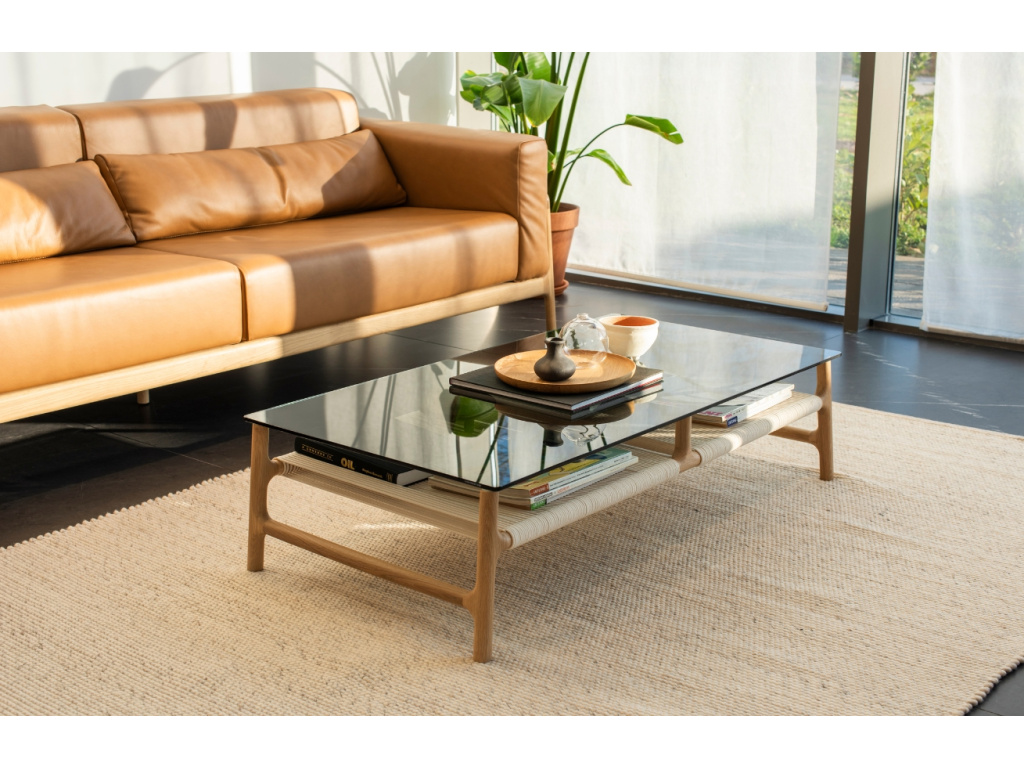 Konferenční stolek Fawn disponuje odkládací policí v podobě elegantního výpletu. Ten je tvořený pevným bavlněným lanem, které se skvěle doplňuje s konstrukcí z masivního naolejovaného dubového dřeva. Třešničkou na dortu je pak obdélníková deska z tvrzeného skla. Spojením těchto materiálů vzniká půvabný a sofistikovaný designový kousek, který se stane výraznou chloubou vašeho obývacího pokoje. K dostání je také ve čtvercovém provedení a v menší odkládací verzi – co takhle jim v interiéru najít místo všem?