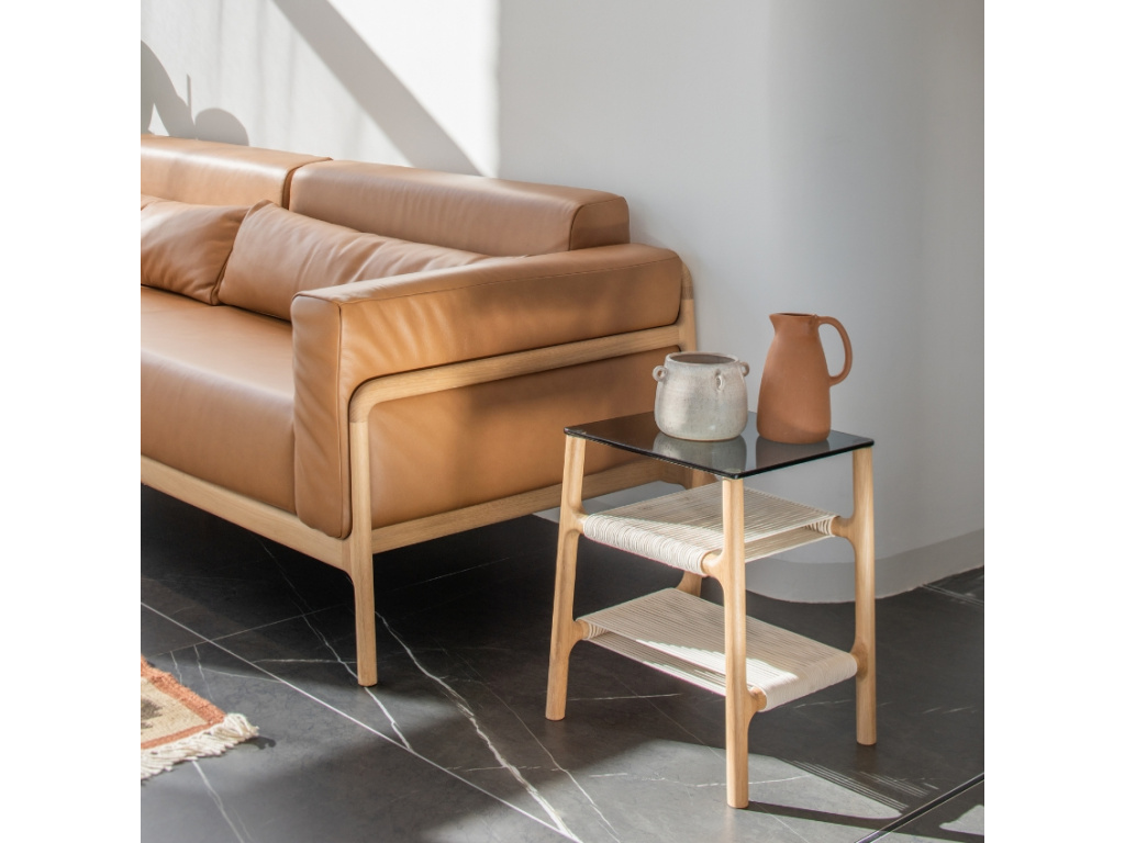 Odkládací stolek Fawn disponuje dvěma odkládacími policemi v podobě elegantních výpletů. Ty jsou tvořeny pevným bavlněným lanem, které se skvěle doplňuje s konstrukcí z masivního naolejovaného dubového dřeva. Třešničkou na dortu je pak obdélníková deska z tvrzeného skla. Spojením těchto materiálů vzniká půvabný a sofistikovaný designový kousek, který se stane výraznou chloubou vašeho obývacího pokoje. K dostání je také ve dvou velikostech prostornější konferenční verze – co takhle jim v interiéru najít místo všem?