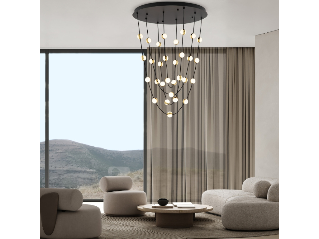 Série závěsných světel Alcinoe od Nova Luce představuje unikátní kolekci svítidel, která se řídí podle nejnovějších trendů. Světla Alcinoe vynikají svým unikátním designem v podobě černých kabelů, na kterých najdete nespočet bílých světelných koulí, zdobených elegantním zlatým proužkem. Kromě své praktické funkce doplní tato světla každou místnost o originální dekorativní kousek. Díky stmívatelnosti můžete intenzitu světla ovládat dle potřeby.