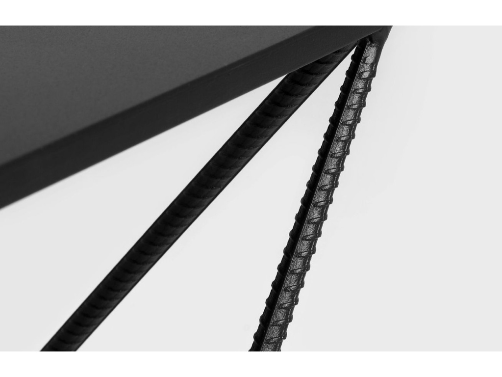 Konferenční stolek Deryl se vyznačuje svým neobvyklým tvarem podnože a industriálním vzhledem. Díky svému tvaru a celokovovému provedení se skvělé hodí do moderních interiérů. Kovová deska disponuje netradičním zkosením rohů, čímž podkresluje celkový vzhled stolku.