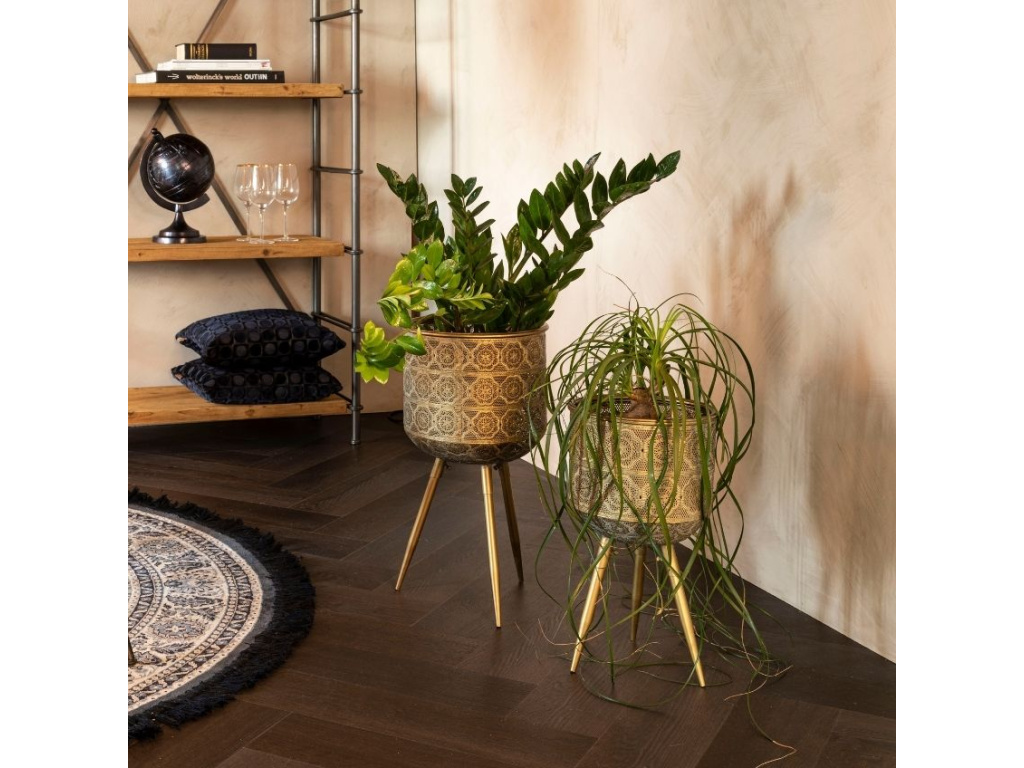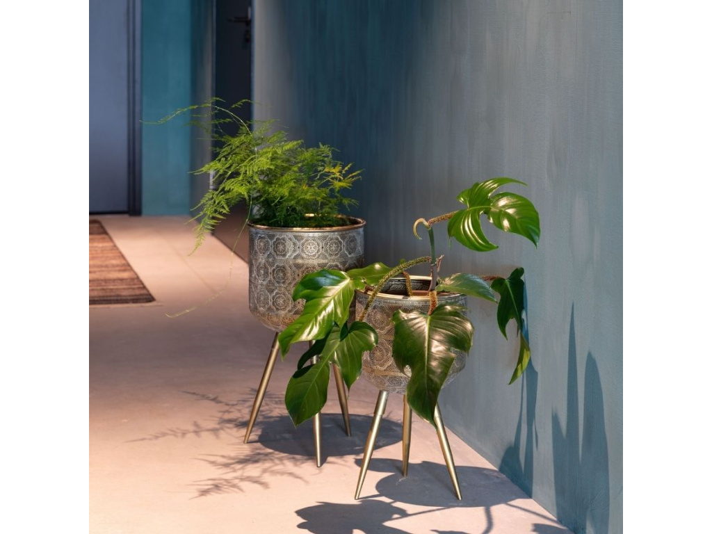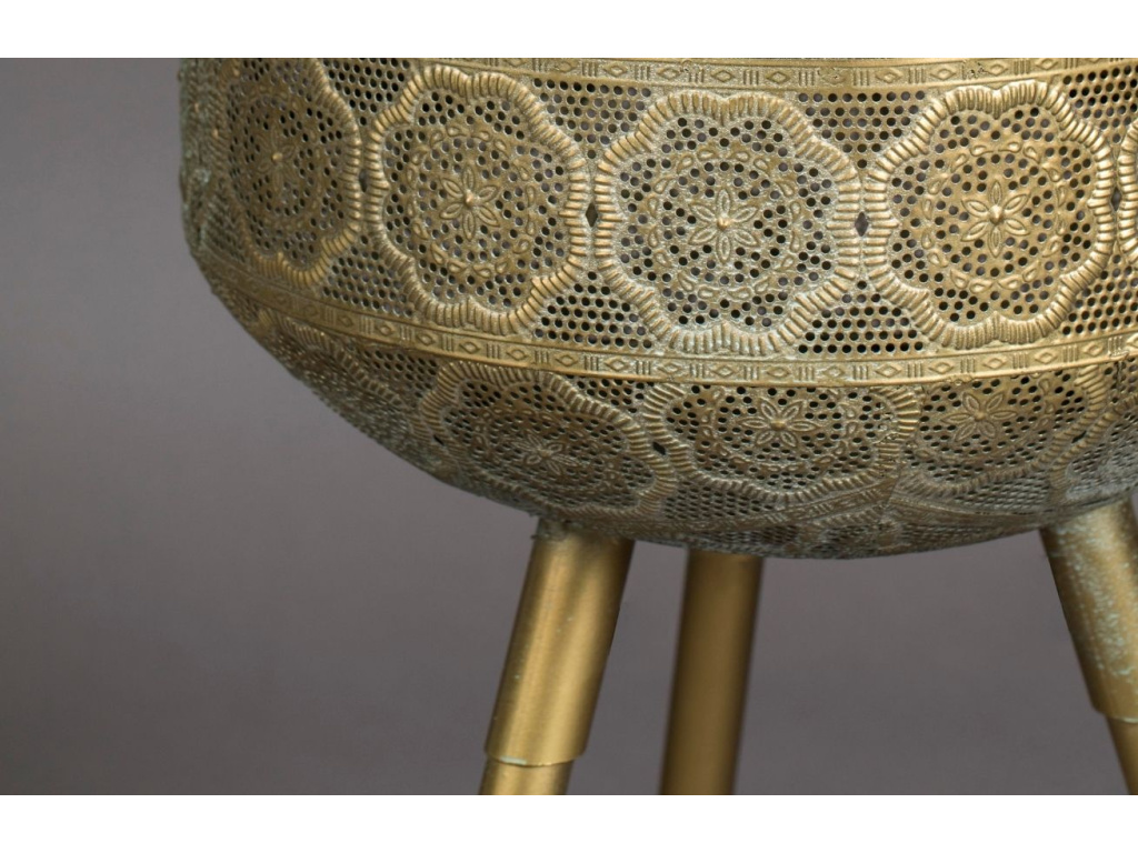 Květináč DUTCHBONE Botanique L je stylový doplněk pro váš interiér, kde zaujme především svým vzorovaným motivem. Celokovová konstrukce ve zlaté barvě bude skvělým domovem pro vaši pokojovou rostlinu. Vysoká podnož dá rostlině víc prostoru k růstu a vám usnadní zalévání. Kovová podnož zajistí květináči perfektní stabilitu.