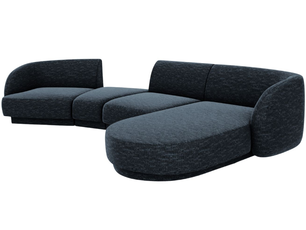Čtyřmístnou rohovou pohovku Miley od značky Micadoni si zamilujete! Její elegantně obloukovité opěradlo vás doslova zve k odpočinku, zatímco jemně zapuštěná základna dodává celému kusu vzdušnost a lehkost. Žinylková potahová látka je velmi příjemná až téměř hedvábná na dotek. Probarvené nitě vytvářejí poutavou 3D strukturu se stínovým a lesklým efektem. Tkanina je velmi odolná proti oděru, díky tomu je pohovka vhodná i do komerčních prostor. Vysoká kvalita a neobyčejný vzhled látky dodávají nábytku sofistikovaný dojem, který umožňuje jeho široké využití v moderním nebo skandinávském stylu. Integrovaný konferenční stolek je nejen designovým prvkem, ale také praktickým místem pro odložení věcí, které chcete mít po ruce, nebo pro umístění dekorací. K pohovce je možné přikoupit další produkty z kolekce Miley. Díky tomu si můžete vytvořit sedací soupravu, kterou je vhodné kombinovat se skleněným nebo dřevěným konferenčním stolkem.