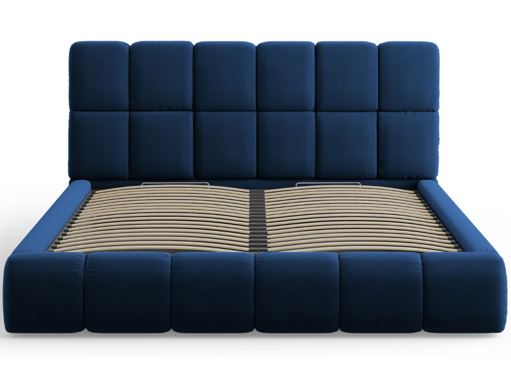 Dvoulůžková postel Bellis vás přenese na pobřeží uklidňující Skandinávie. Měkké čalouněné čelo s geometrickým prošíváním je krásným dekorativním prvkem, který poskytuje pohodlí. Při čtení nebo sledování filmu budete mít kvalitní podpěru pro váš krk nebo záda. Celá konstrukce je čalouněna látkou imitující samet s mírným leskem, která vykazuje vysokou odolnost proti oděru. Nezbytným prvkem lůžka je úložný prostor pod matrací, který vám pomůže efektivně využít prostor a udržet v ložnici pořádek. K lůžku doporučujeme zakoupit matraci od značky Micadoni.