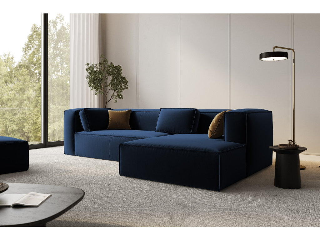 Podívám seKrálovsky modrá sametová rohová pohovka Mackay 282 cm, pravá