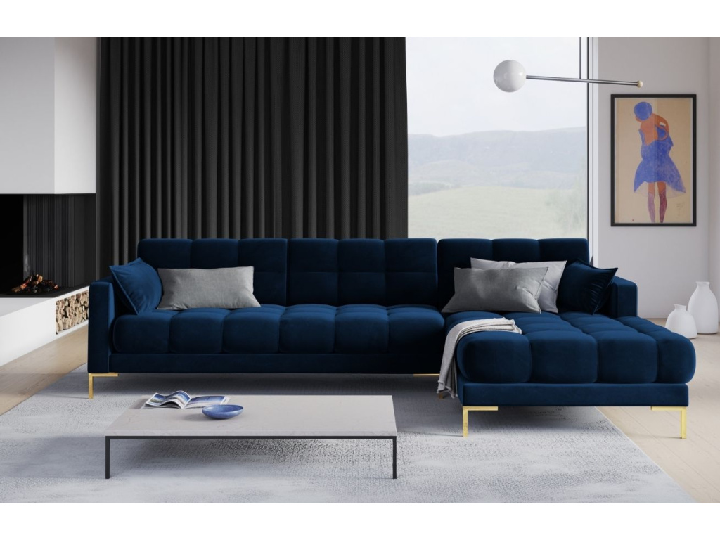 Elegantní rohová pohovka MICADONI MAMAIA zaujme na první pohled svým nadýchaným vzhledem. Velmi příjemné sametové čalounění a kovová podnož vytváří kontrast, který interiéru dodá elegantní vzhled a nádech luxusu. Díky zajímavému prošívání vzniká jemný design, který do vašeho domova vnese lehkost a styl. Opěrné polštářky zvednou úroveň vašeho odpočinku o stupeň výš. Nechte se obklopit komfortem ve společnosti produktů Mamaia.