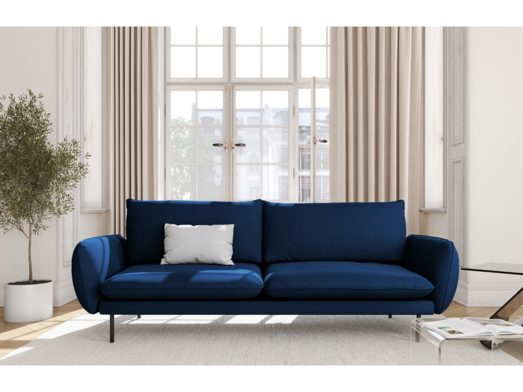 Pohovka Vienna od Cosmopolitan Design je poctou nadčasové eleganci, smyslu pro detail a dokonale vyváženým proporcím. Jemně tvarované opěrky, měkké polštáře a ladná silueta jí propůjčují lehkost, která zaujme na první pohled. Kontrastní černě lakovaná kovová podnož dodává celku vizuální vzdušnost a současně zajišťuje stabilitu. Luxusní sametový potah je nejen krásný na pohled, ale i příjemný na dotek – hladký, hebký a přirozeně elegantní. Na výběr je široká paleta pečlivě vybraných odstínů, které se snadno sladí s jemně minimalistickým interiérem i s odvážnějšími koncepty. Vienna vždy zapadne s lehkostí a zároveň dodá prostoru výraz. A protože každý domov má jiné potřeby, kolekce Vienna je k dispozici v několika velikostech – od kompaktních modelů ideálních do menších bytů až po velkorysé pohovky, na které se vejde celá rodina i s chlupatým parťákem.