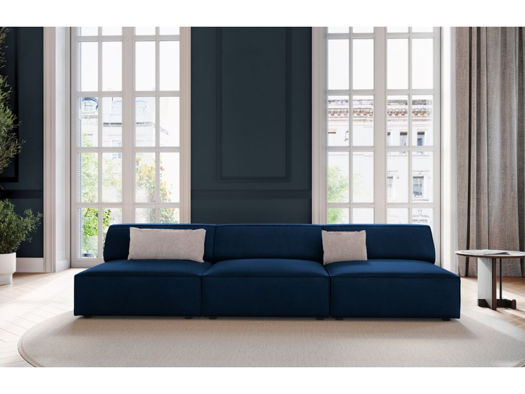 Prostorná modulární trojmístná pohovka Jodie od značky Micadoni zaujme svou krásnou siluetou. Čalounění je vyrobené z tkaniny, která imituje samet s jemným leskem. Látka se vyznačuje dobrou odolností proti oděru, což výrazně snižuje riziko jejího poškození, také prošla testem na cigarety, díky tomu je pohovka vhodná i do komerčních prostor. Její polstrovaný tvar vám zaručí plnohodnotný odpočinek, zatímco hluboký sedák umožní dokonalou relaxaci. Opřít se můžete také o tvarované opěráky a široké područky, které vybízejí k nespoutanému lenošení. Nízká podnož ladí s útulnou siluetou nábytku. Velký výběr modulů vám umožní vytvořit si kombinace, které budou nejlépe vyhovovat vašemu obývacímu pokoji v minimalistickém či skandinávském stylu.