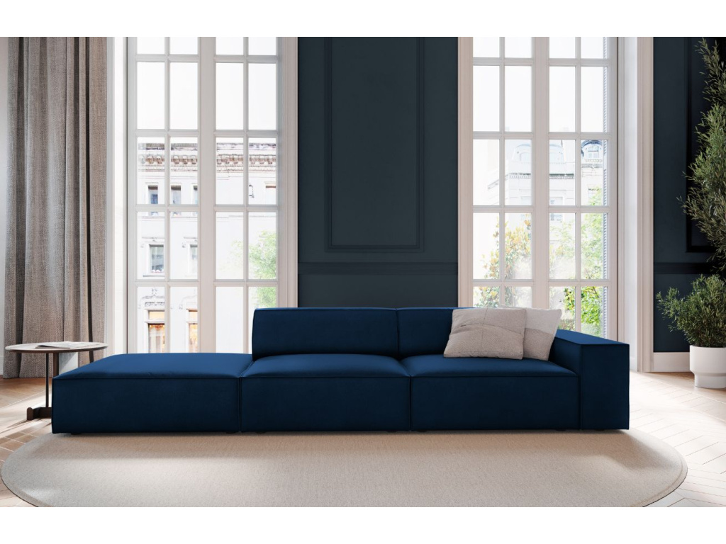 Prostorná modulární trojmístná pohovka Jodie od značky Micadoni zaujme svou krásnou siluetou. Čalounění je vyrobené z tkaniny, která imituje samet s jemným leskem. Látka se vyznačuje dobrou odolností proti oděru, což výrazně snižuje riziko jejího poškození, také prošla testem na cigarety, díky tomu je pohovka vhodná i do komerčních prostor. Její polstrovaný tvar vám zaručí plnohodnotný odpočinek, zatímco hluboký sedák umožní dokonalou relaxaci. Opřít se můžete také o tvarované opěráky a široké područky, které vybízejí k nespoutanému lenošení. Nízká podnož ladí s útulnou siluetou nábytku. Velký výběr modulů vám umožní vytvořit si kombinace, které budou nejlépe vyhovovat vašemu obývacímu pokoji v minimalistickém či skandinávském stylu.
