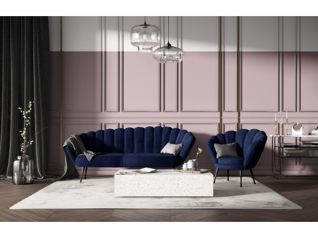 Křeslo Kingston značky Cosmopolitan Design představuje spojení elegance a neotřelého vzhledu. Jeho jemně lesklé sametové čalounění v královsky modrém odstínu je hebké a příjemné na dotek. Tkanina je velmi odolná proti oděru a absorpci tekutin, čímž zaručí dlouhodobé používání bez známek opotřebení. Celkový design křesla doplňuje černě lakovaná kovová podnož. Pro dokonale sladěný sedací kout doporučujeme křeslo doplnit o pohovku ze stejnojmenné série. Všechny produkty nabízíme v sedmi barevných provedeních. Užijte si pohodlí a styl v jednom!