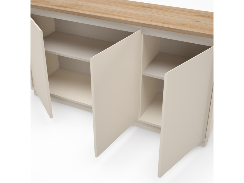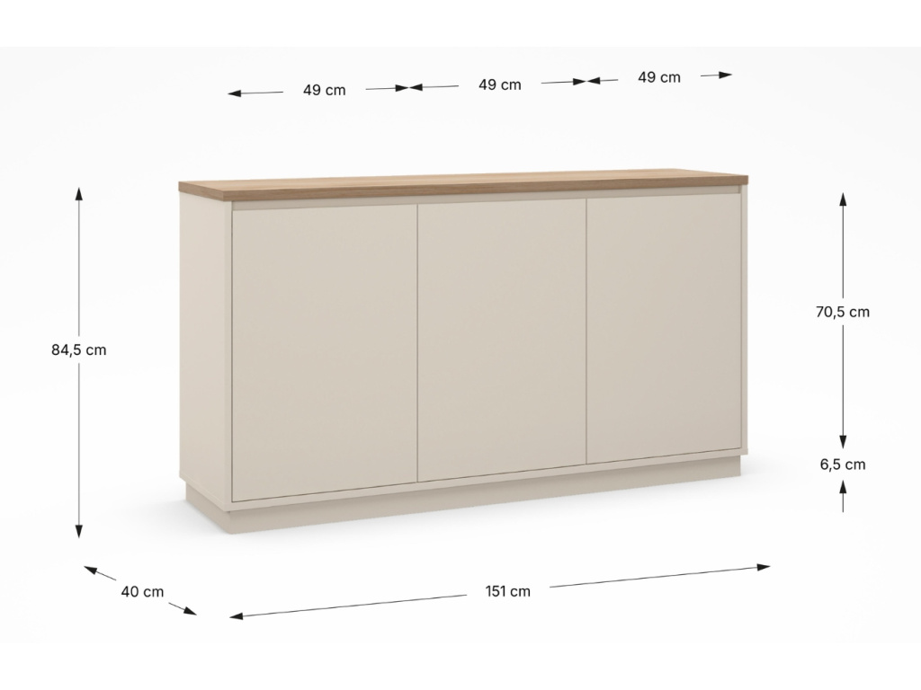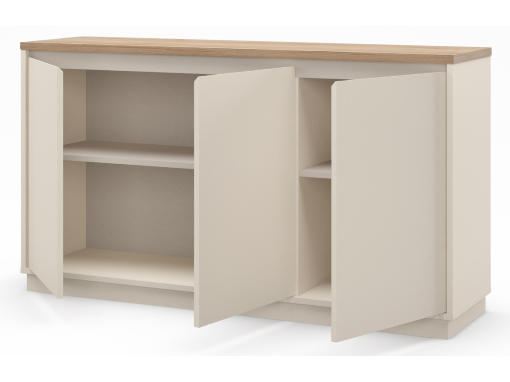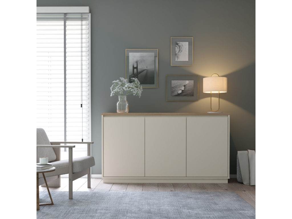 Komoda Loreta propojuje jednoduché linie s přírodními tóny, které interiéru dodají útulnost a lehkost. Krémové lamino v kombinaci s dekorem dubu působí vzdušně a nenápadně, přesto však elegantně. Uvnitř se ukrývá dostatek prostoru pro uložení všeho, co chcete mít po ruce, ale ne nutně na očích. Díky univerzálnímu vzhledu skvěle zapadne do skandinávsky laděného obýváku, jídelny i předsíně. Celou kolekci Loreta doplňuje ještě druhá, větší komoda a TV stolek ve stejném stylu – ideální pro vytvoření jednotného, vyladěného domova.