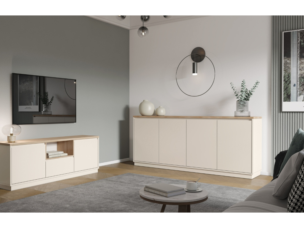 Komoda Loreta propojuje jednoduché linie s přírodními tóny, které interiéru dodají útulnost a lehkost. Krémové lamino v kombinaci s dekorem dubu působí vzdušně a nenápadně, přesto však elegantně. Uvnitř se ukrývá dostatek prostoru pro uložení všeho, co chcete mít po ruce, ale ne nutně na očích. Díky univerzálnímu vzhledu skvěle zapadne do skandinávsky laděného obýváku, jídelny i předsíně. Celou kolekci Loreta doplňuje ještě druhá, menší komoda a TV stolek ve stejném stylu – ideální pro vytvoření jednotného, vyladěného domova.
