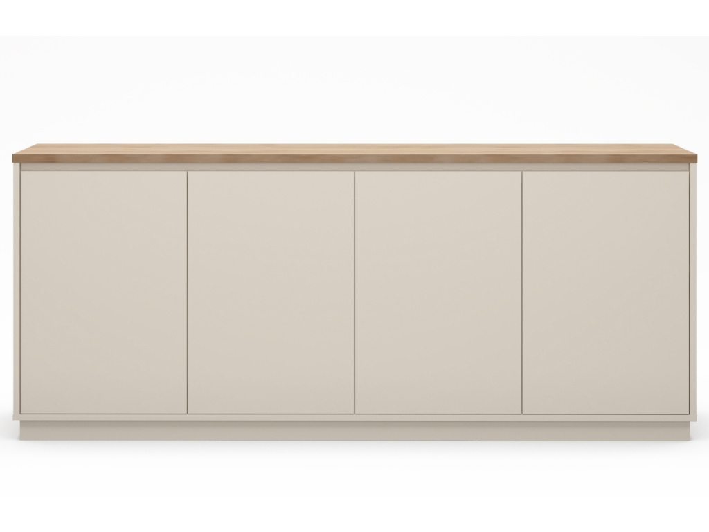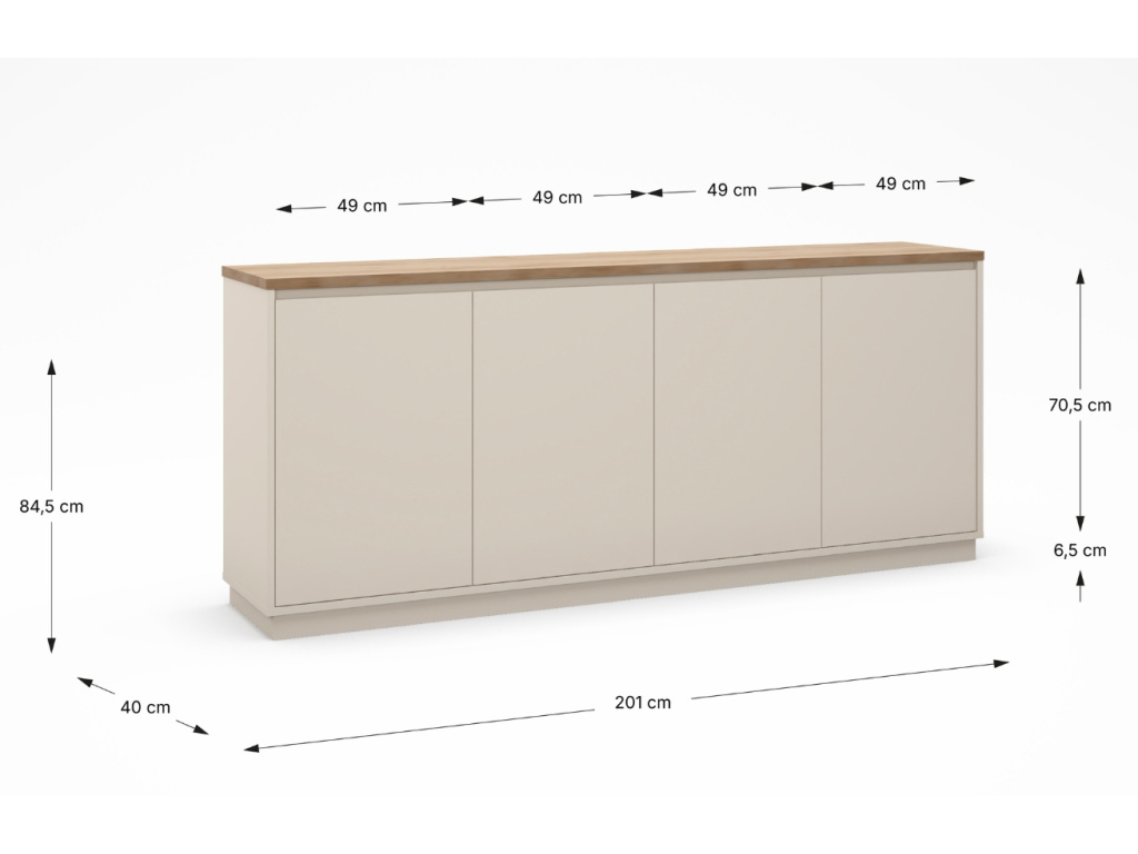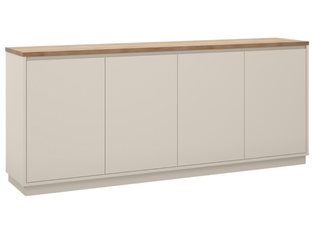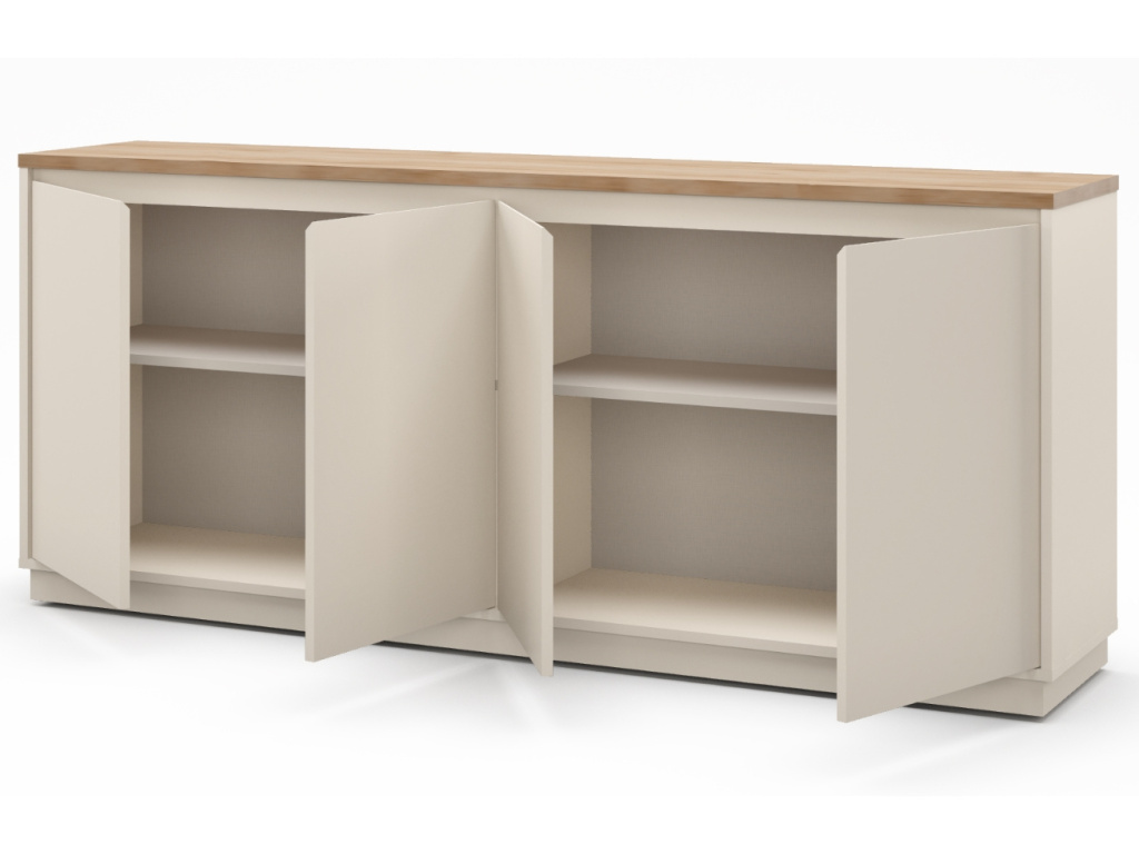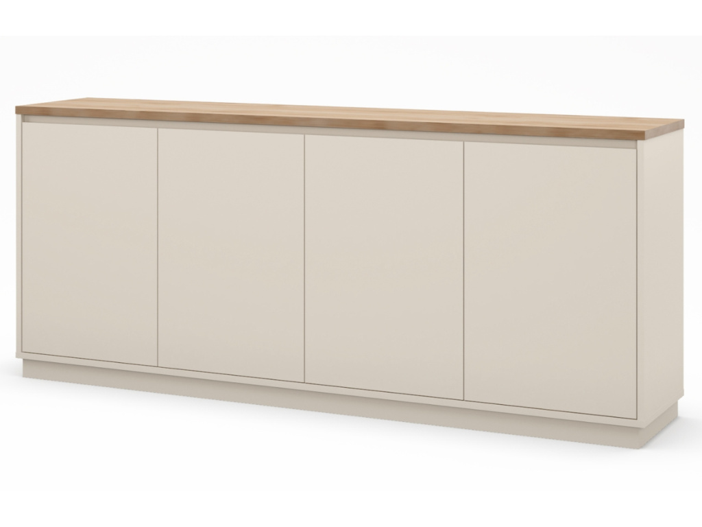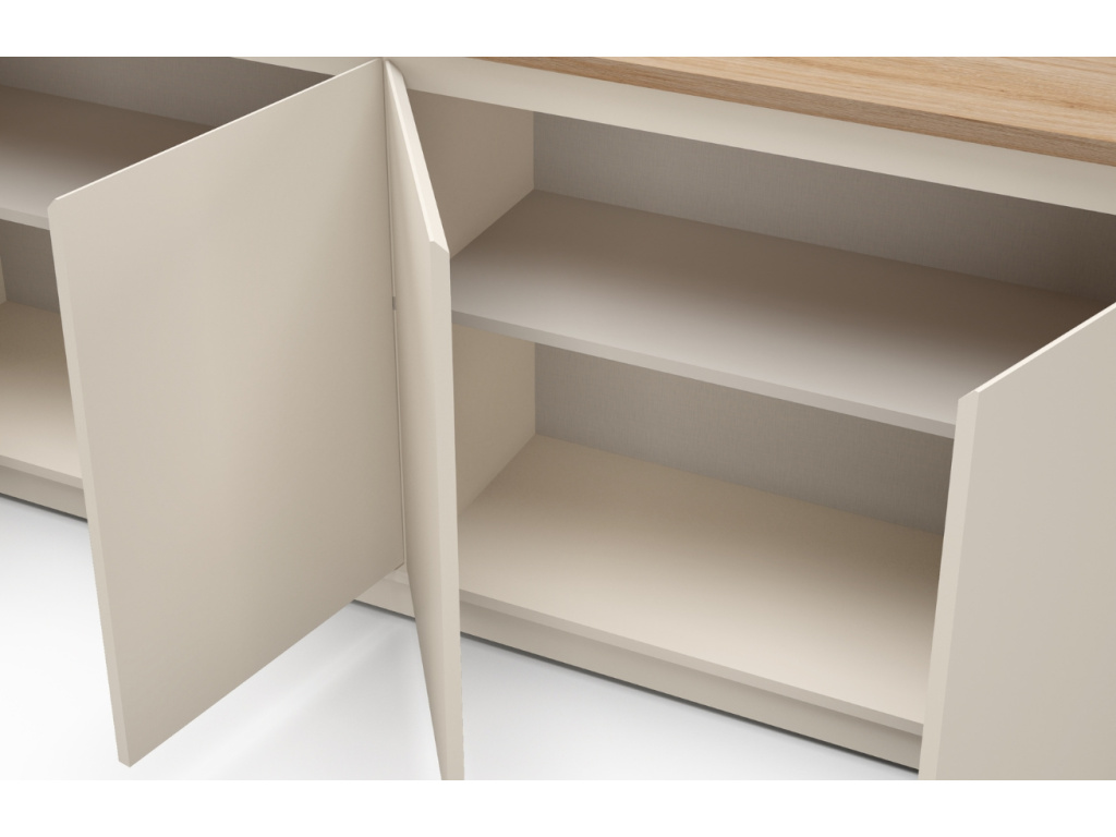 Krémová lakovaná komoda Loreta 201 x 40 cm s dubovým dekorem
