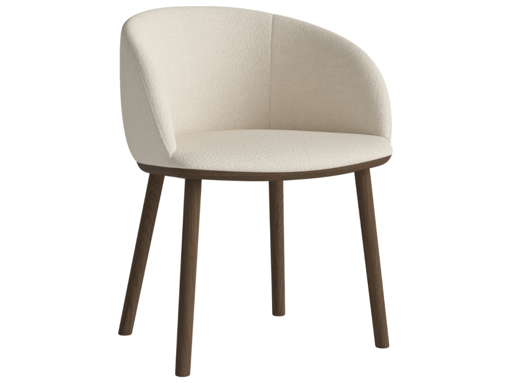 Krémově bílá bouclé jídelní židle Join s tmavou dubovou podnoží