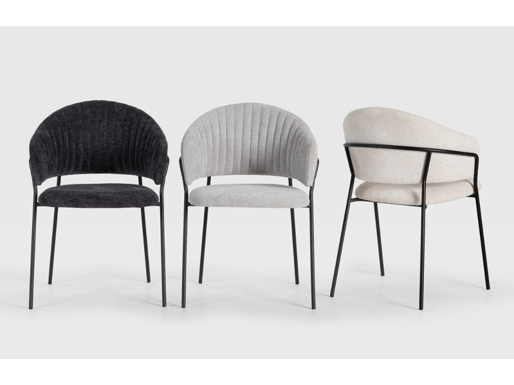 Dopřejte si jídelní sezení, které potěší oko i záda – s krémově bílou židlí Leticia od španělské značky Marckeric. Její měkce čalouněný sedák a pohodlné opěradlo s vertikálním prošíváním zaručí maximální komfort i při dlouhých večeřích. Minimalistická podnož v černém laku působí vzdušně, a přesto pevně. Vybrat si můžete celkem ze čtyř barevných variant – tmavě šedé, světle šedé, béžové a krémově bílé, které se snadno sladí s vaším interiérem.