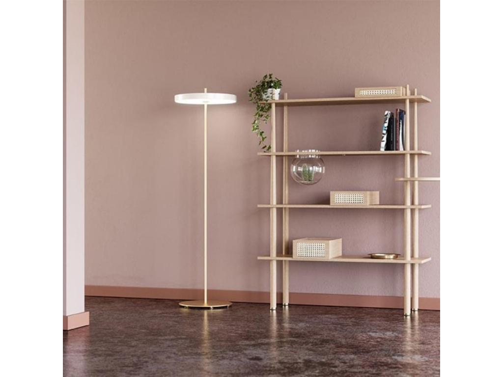 Stojací lampa Umage Asteria se zrodila na pomezí designu, technologie a řemeslného zpracování. Obsahuje vestavěnou LED technologii s tak minimalistickým tvarem, že nikdy nevyjde z módy. Panel LED je stmívatelný a má bílý difuzor zajišťující měkké osvětlení okolního prostoru. Mosazná kovová podstava, procházející stínidlem jako svislá osa, umocňuje jemný výraz. Otočením vrchní částí lampu zapnete či vypnete. Lampu doporučujeme kombinovat i s ostatními světly z řady Asteria.