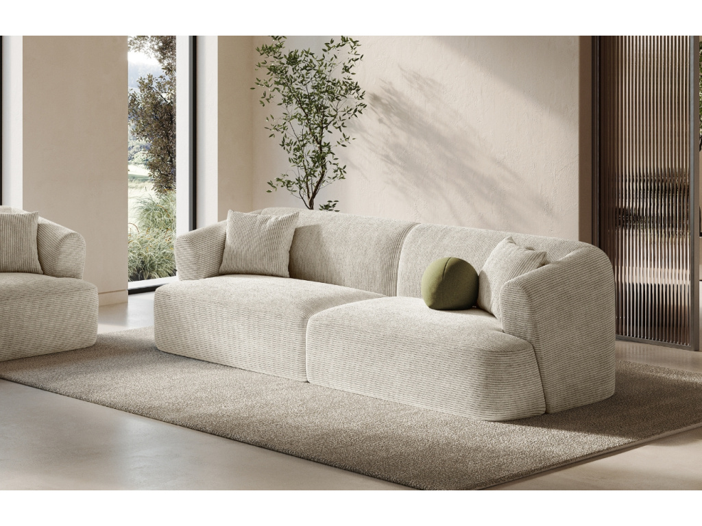 Pohovka Campi od značky Cosmopolitan Design je ztělesněním moderní elegance. Její nízký profil, výrazné zaoblené tvary a velkorysé sedáky vytvářejí dojem klidu, luxusu a sebevědomého designu. O vaše maximální pohodlí se postará manšestrová látka Lincoln – látka s jemným žebrovaným vzorem, sametově měkkým omakem a příjemnou hřejivostí, která láká k posezení. Pohovka je dostupná v pestré paletě barev – od jemných neutrálních tónů až po syté, výrazné odstíny. Díky tomu si snadno vyberete variantu, která dokonale ladí s vaším stylem i náladou interiéru. Campi je dokonalým spojením moderního vzhledu a každodenního pohodlí – pro interiér, který má styl i duši.
