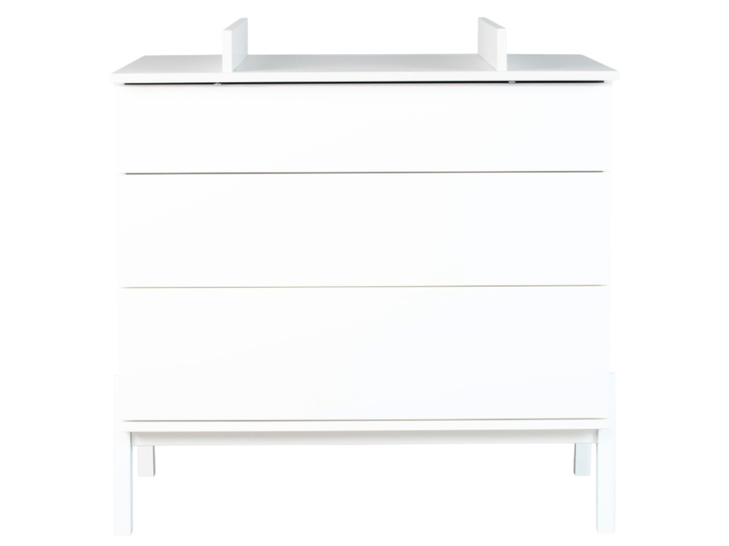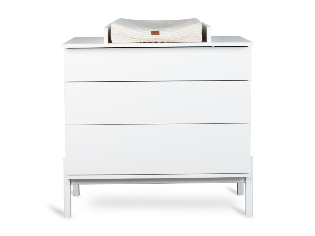 Rozšiřte komodu Ashi od značky Quax s přebalovací nástavbou, která je skvělým pomocníkem v každodenní péči o miminko. Tento promyšlený doplněk snadno promění vaši komodu v přebalovací pult, čímž vytvoříte místo, kde budete mít vše potřebné po ruce – od plenek po krémy a ubrousky. Zvýšené okraje zajistí, že přebalovací podložka pevně drží na svém místě a zamezí jejímu pohybu během přebalování. Dopřejte sobě i svému dítěti komfortní zázemí, které vám usnadní každý den plný péče a lásky. Doplňte svůj interiér o další elegantní kousky z této kolekce a dosáhněte dokonale sladěného celku.