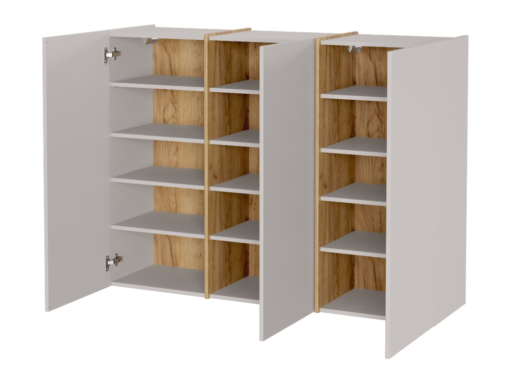 Čisté linie, jemná krémová barva a promyšlené detaily – nástěnná skříňka Libbiano Plus je důkazem toho, že i praktický úložný prostor může působit elegantně a reprezentativně. Značka Germania vsadila na moderní design, precizní provedení a důmyslnou funkčnost, díky nimž se tato skříňka stane spolehlivou součástí vašeho domova na mnoho let. Dvířka se otevírají s lehkostí a tichostí díky integrovanému tlumenému dovírání, zatímco nastavitelné police uvnitř umožní přizpůsobit prostor přesně vašim potřebám – ať už ukládáte kabelky, drobnosti do kapsy nebo sezónní doplňky. Povrchová úprava z melaminové pryskyřice chrání korpus před poškrábáním a vlhkostí, zatímco kvalitní ABS hrany zaručují, že si botník zachová svůj vzhled po dlouhá léta. Libbiano Plus je typem nábytku, který nejen udrží pořádek, ale přinese do interiéru harmonii, lehkost a moderní estetiku. Perfektní volba pro vstupní haly i menší předsíně, kde záleží na každém centimetru a na každém prvním dojmu.