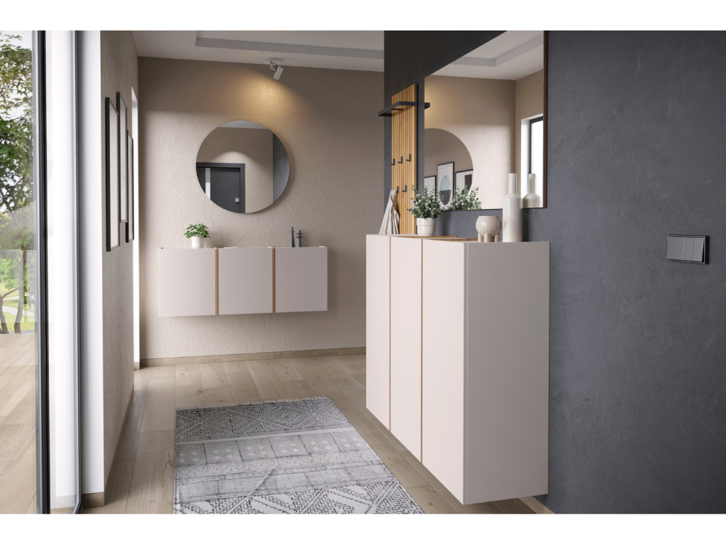 Čisté linie, jemná krémová barva a promyšlené detaily – nástěnná skříňka Libbiano Plus je důkazem toho, že i praktický úložný prostor může působit elegantně a reprezentativně. Značka Germania vsadila na moderní design, precizní provedení a důmyslnou funkčnost, díky nimž se tato skříňka stane spolehlivou součástí vašeho domova na mnoho let. Dvířka se otevírají s lehkostí a tichostí díky integrovanému tlumenému dovírání, zatímco nastavitelné police uvnitř umožní přizpůsobit prostor přesně vašim potřebám – ať už ukládáte kabelky, drobnosti do kapsy nebo sezónní doplňky. Povrchová úprava z melaminové pryskyřice chrání korpus před poškrábáním a vlhkostí, zatímco kvalitní ABS hrany zaručují, že si botník zachová svůj vzhled po dlouhá léta. Libbiano Plus je typem nábytku, který nejen udrží pořádek, ale přinese do interiéru harmonii, lehkost a moderní estetiku. Perfektní volba pro vstupní haly i menší předsíně, kde záleží na každém centimetru a na každém prvním dojmu.
