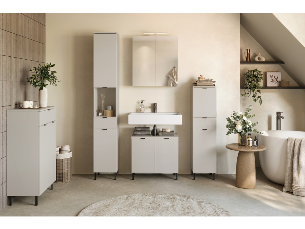 Umyvadlová skříňka Arcena od značky Germania je přesně ten detail, který dokáže z koupelny udělat harmonické, moderní a perfektně uspořádané místo. Skříňka je navržena tak, aby každodenní používání bylo maximálně komfortní. Povrchová úprava z melaminové pryskyřice chrání korpus před poškrábáním a vlhkostí, zatímco kvalitní ABS hrany zaručují, že si skříňka zachová svůj vzhled po dlouhá léta. Uvnitř najdete výškově nastavitelné police, které si snadno přizpůsobíte podle toho, co právě potřebujete uložit – od kosmetiky, přes čisticí prostředky až po ručníky či fén. Každý detail je promyšlený tak, aby nabídl maximum místa a zároveň vám ušetřil cenný prostor v koupelně. Jemné kovové úchytky dodávají Arceně moderní eleganci a umožňují pohodlné otevírání i při každodenním používání. Díky své kompaktní velikosti je Arcena perfektní i do menších koupelen, kde se počítá každý centimetr, aniž byste museli dělat kompromis mezi stylem a funkčností. Arcena vnese do vaší koupelny pořádek, lehkost a příjemnou atmosféru – a každý den vám připomene, že i praktické věci mohou být krásné.