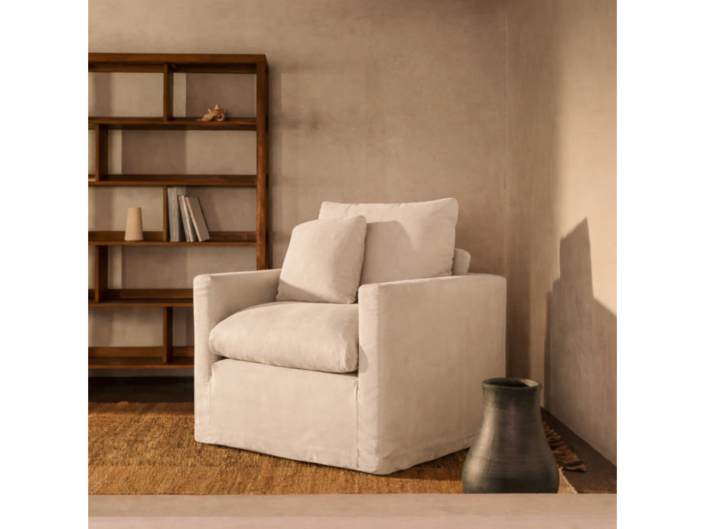 Série pohodlného funkčního nábytku Nora od Kave Home vám zaručeně pomůže zútulnit váš domov. Čalouněné křeslo disponuje praktickým odnímatelným potahem, který můžete v případě znečištění kdykoliv vyprat. O vaše pohodlí se postarají také 2 dekorativní polštáře, v jejichž výplni najdete měkké pěnové odřezky a recyklovaná PET vlákna. Díky potahu ze směsi bavlny a lnu s sebou křeslo přinese nádech přírody a skvěle tak zapadne do rustikálních, scandi i boho interiérů. Vychutnejte si díky tomuto stylovému kousku vaše chvilky relaxu a slaďte pohovku s ostatními kousky ze stejnojmenné kolekce.