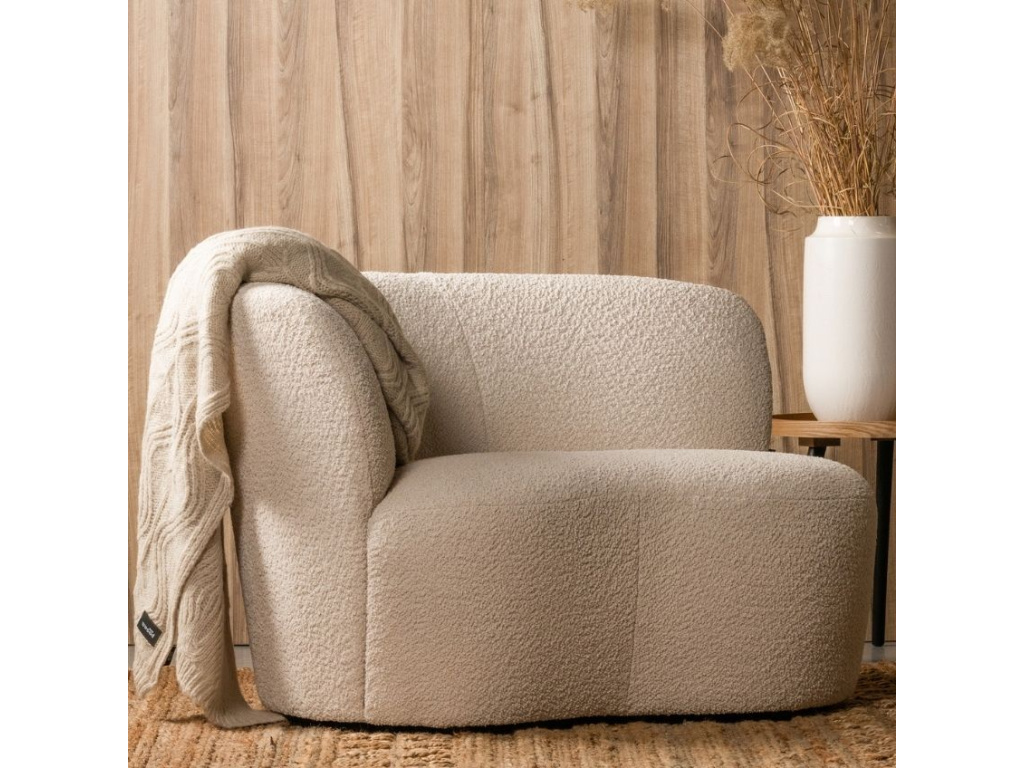 Stylové křeslo Stania působí měkce a svým zaobleným tvarováním na první pohled slibuje maximálně pohodlné posezení. Je čalouněné velice příjemnou látkou krémově bílé barvy, která má na povrchu jemnou strukturu. Můžete ho mít v pravém i levém provedení, aby přesně vyhovělo potřebám vašeho interiéru. Podnož křesla je 2,5 cm nízká a tvoří ji pevný plast černé barvy. Stania pomůže interiér zútulnit a doplnit ho výrazným designovým kouskem.