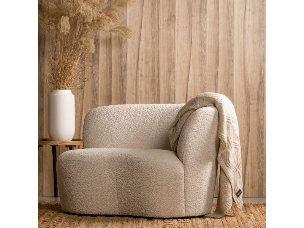 Stylové křeslo Stania působí měkce a svým zaobleným tvarováním na první pohled slibuje maximálně pohodlné posezení. Je čalouněné velice příjemnou látkou krémově bílé barvy, která má na povrchu jemnou strukturu. Můžete ho mít v pravém i levém provedení, aby přesně vyhovělo potřebám vašeho interiéru. Podnož křesla je 2,5 cm nízká a tvoří ji pevný plast černé barvy. Stania pomůže interiér zútulnit a doplnit ho výrazným designovým kouskem.