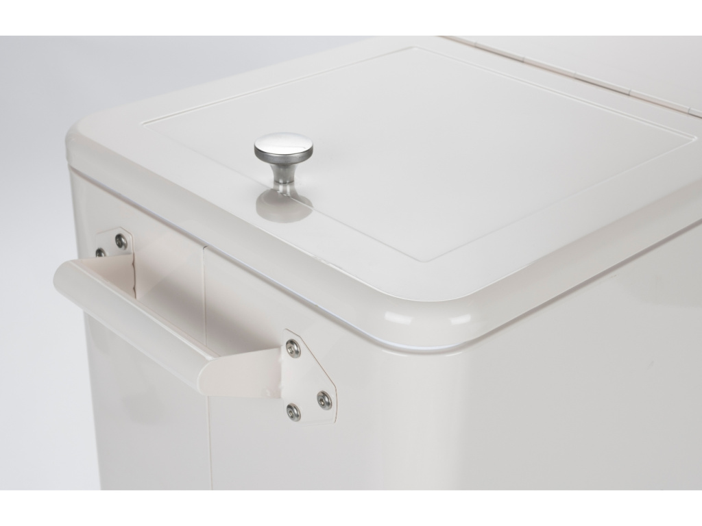 Užijte si osvěžující nápoje venku stylově s chladícím boxem BE COOL od značky ZUIVER. Kovová konstrukce na kolečkách zajišťuje snadnou manipulaci a díky výborné izolaci zůstanou vaše nápoje dlouho studené. Stačí ho naplnit ledem nebo chladicími vložkami a přidat své oblíbené nápoje. Integrovaný otvírák na lahve a praktické úchyty usnadňují jeho používání. BE COOL se stane ideálním společníkem pro pikniky, grilování nebo výlety. Dostupný je ve třech barevných provedeních – černé, zelené a krémově bílé.