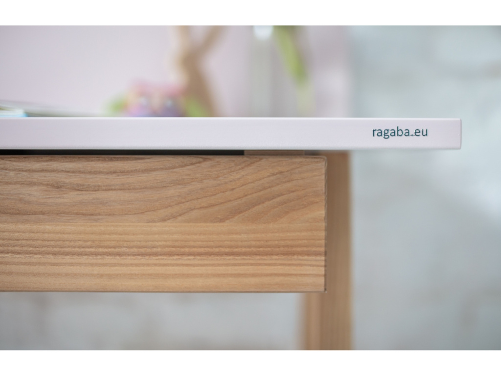 Hledáte-li minimalistický a zároveň funkční a elegantní stůl do vaší pracovny, je RAGABA LUKA právě pro vás. Stůl disponuje zásuvkou z jasanového masivu, která vám poskytne praktické úložiště na potřebné věci. Pracovní deska je vybavena kulatým otvorem na kabely a odnímatelným zadním panelem, který poskytne plochu například pro lepící papírky či fotografie. Odpočinek pro unavené nohy nabídne příčná lišta, která je součástí podnože. LUKA bude perfektním designovým kouskem do vaší pracovny, využití najde také v dětském nebo studentském pokoji.