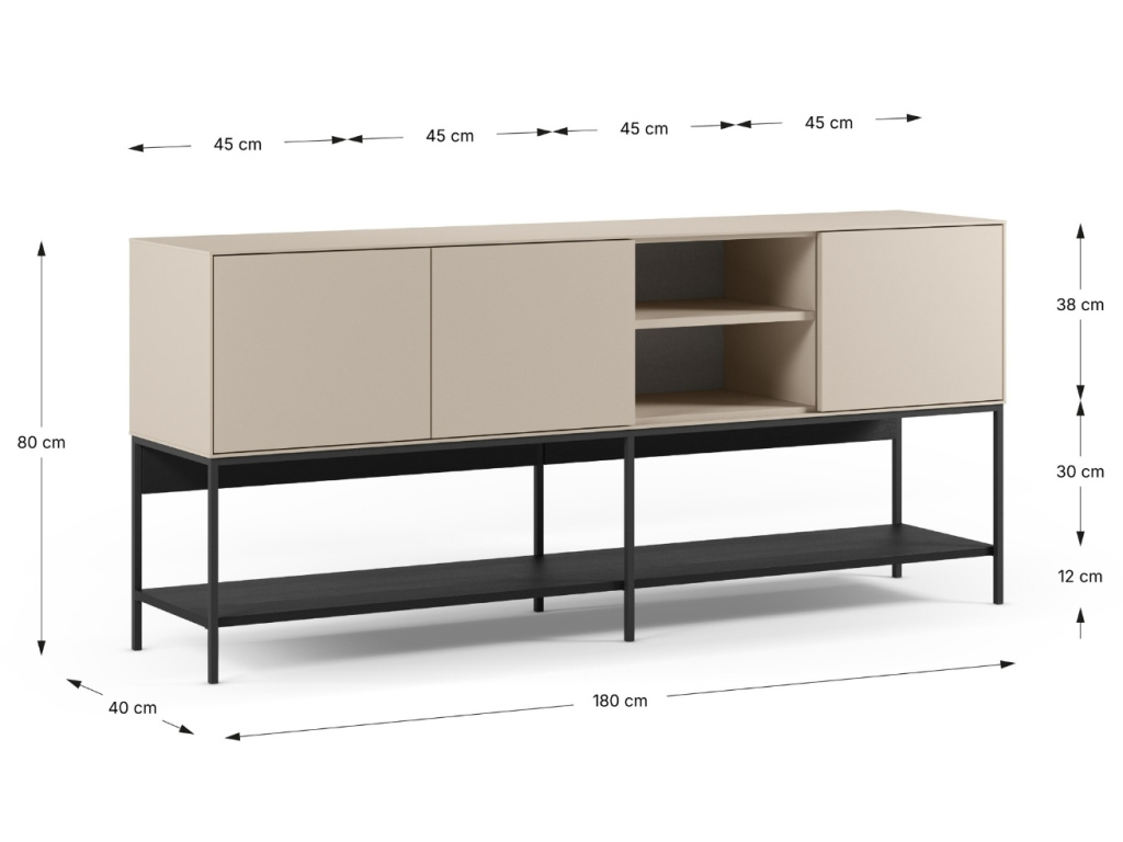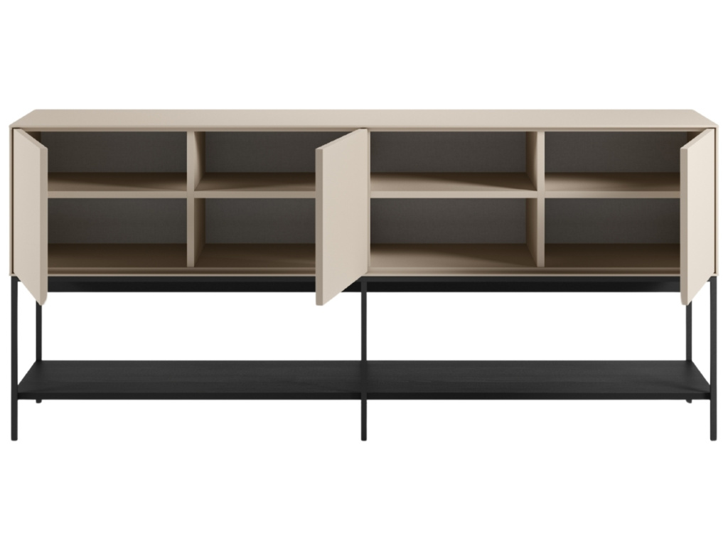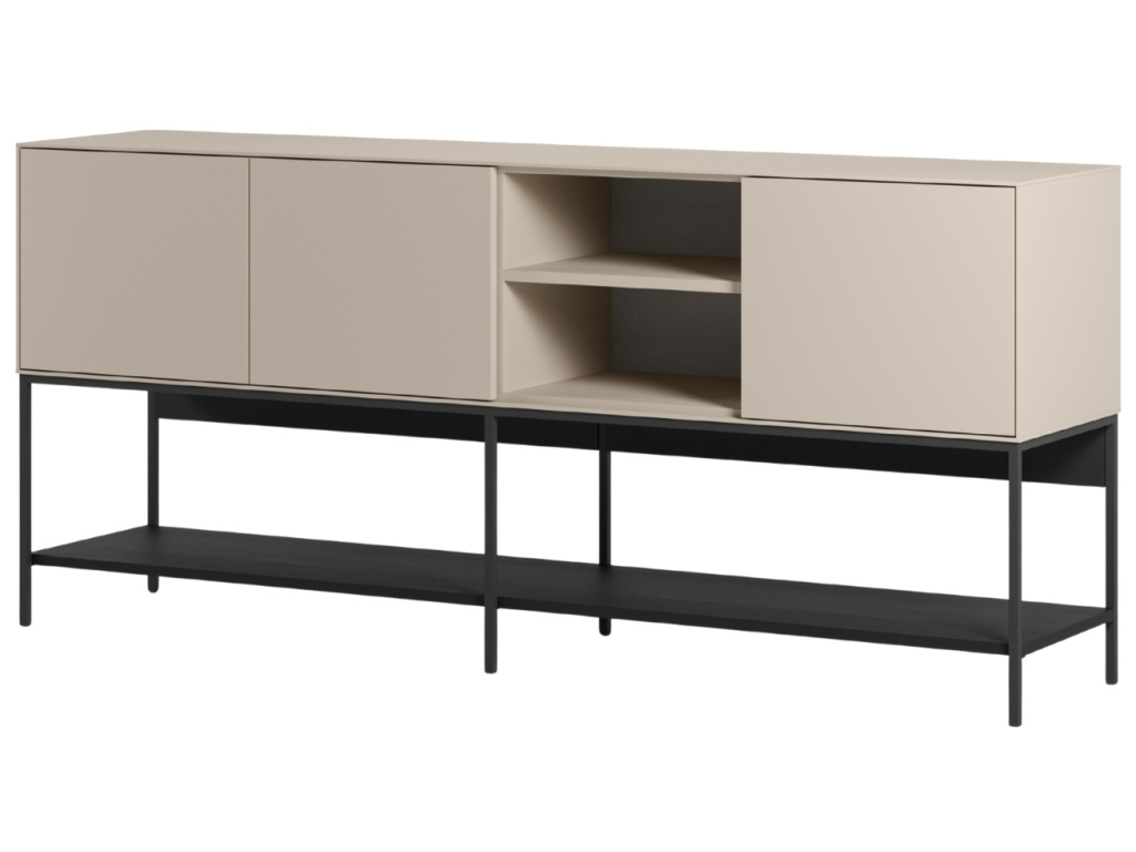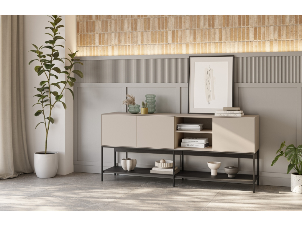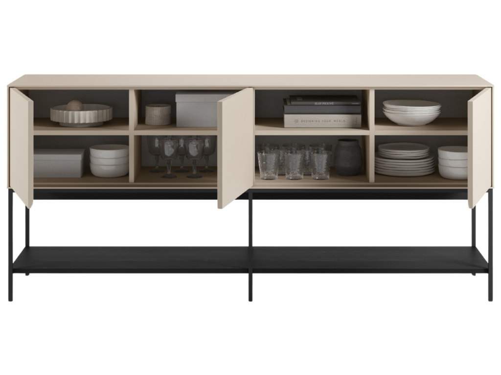 Komoda Amira od značky Marckeric v elegantní krémové a černé kombinaci v sobě spojuje minimalistický design s praktickým úložným řešením. Tři uzavíratelné skříňky a tři otevřené police nabízejí dostatek prostoru pro vše od nádobí přes knihy až po dekorace. Díky kombinaci odolného melaminu a lakovaného kovu se hodí nejen do obývacího pokoje, ale skvěle vynikne i v jídelně či stylové kanceláři. Nadčasový vzhled s industriálním nádechem podtrhne atmosféru každého moderního interiéru! Objevte celou kolekci nábytku a slaďte váš domov k úplné dokonalosti.