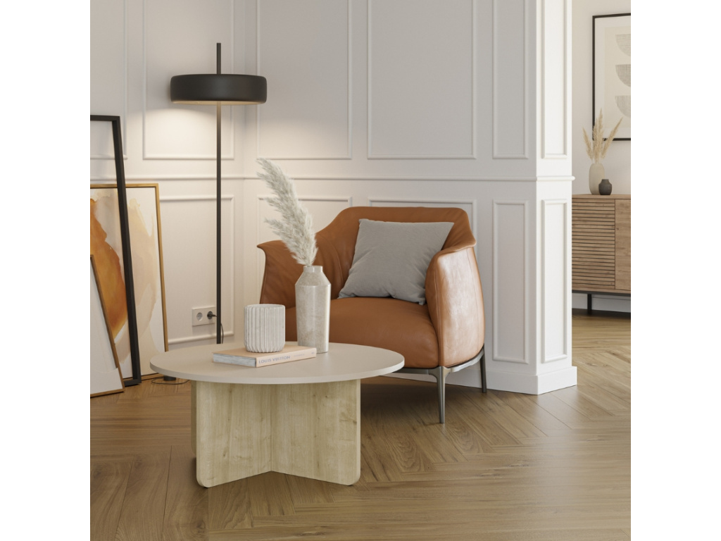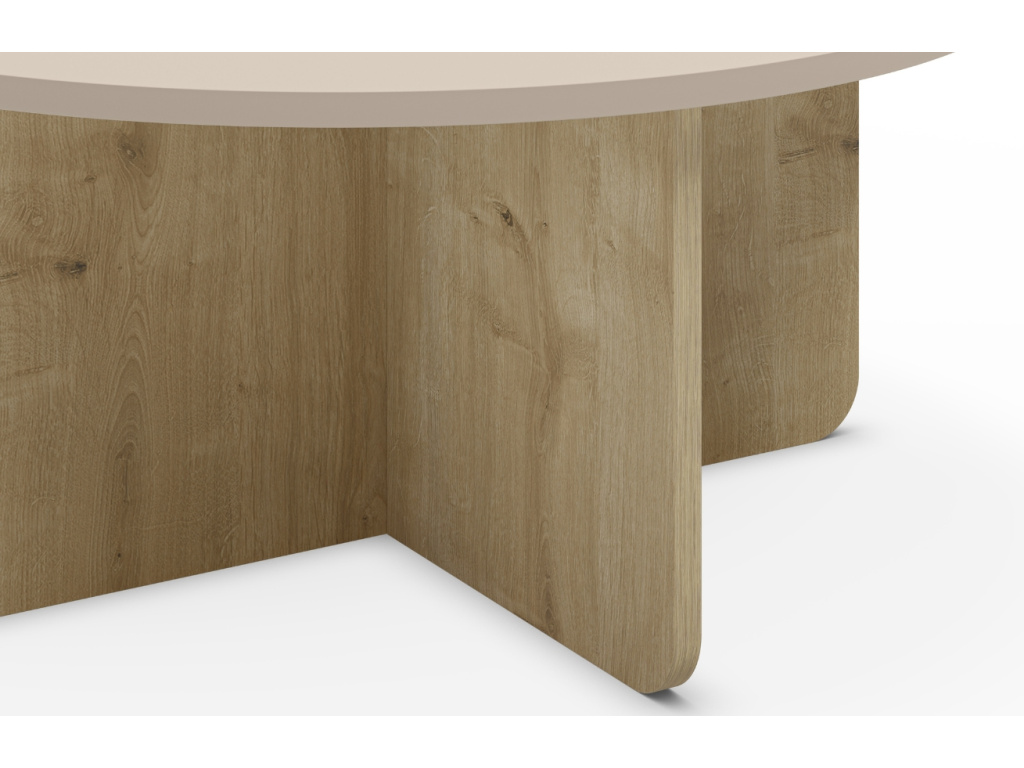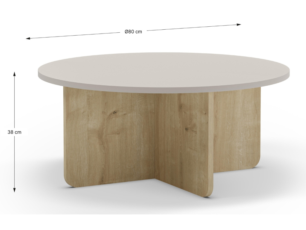 Tento kulatý konferenční stolek Hillary z kvalitního laminátu okouzlí svým elegantním minimalistickým designem. Zaoblené hrany a lakovaná deska v krémovém odstínu působí nejen esteticky měkce, ale zároveň zvyšují bezpečnost při každodenním používání. Skvěle zapadne do moderních i skandinávsky laděných interiérů, kde vynikne kombinace dubového dekoru a jemných linií. V kolekci Hillary najdete hranaté i kulaté varianty ve dvou barevných provedeních – krémové a zelené, přičemž buď je barevná deska a podnož s dubovým dekorem, nebo naopak. Jejich velkou výhodou je, že se dají snadno kombinovat!